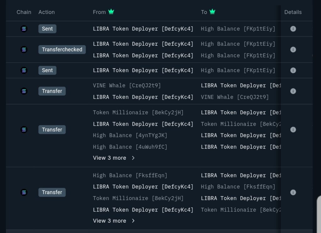 وفقًا للتقرير، قام مشروع عملة meme، Libra، بنقل الأموال عبر سلاسل كتل مختلفة. يُفترض أن المطلعين هم من قاموا بهذه الخطوة وسحبوا ملايين الدولارات من الرمز المنهار. فور نقلهم لهذه الأموال، قاموا بنقلها إلى سولانا، مستفيدين بذلك من الانخفاض الأخير في سوق العملات المشفرة.