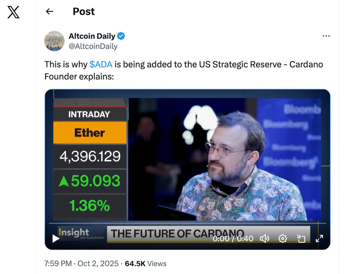 تم إدراج Cardano (ADA) أيضًا كواحدة من أفضل العلملات البديلة للشراء قبل عام 2026، مدعومة بإدراجها في مبادرة مخزون الأصول الرقمية للحكومة الأمريكية.