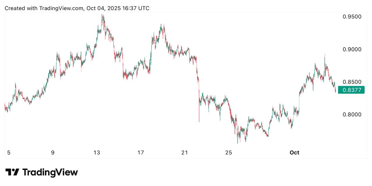 يتم تداول ADA في نطاق 0.80-0.90 دولار بعد استعادة دعم الاتجاه، مع ملاحظة الفنيين لحركة نظيفة فوق المتوسط المتحرك البسيط لـ 50 يومًا — وهي غالبًا العلامة الأولى على تعب البائعين.
