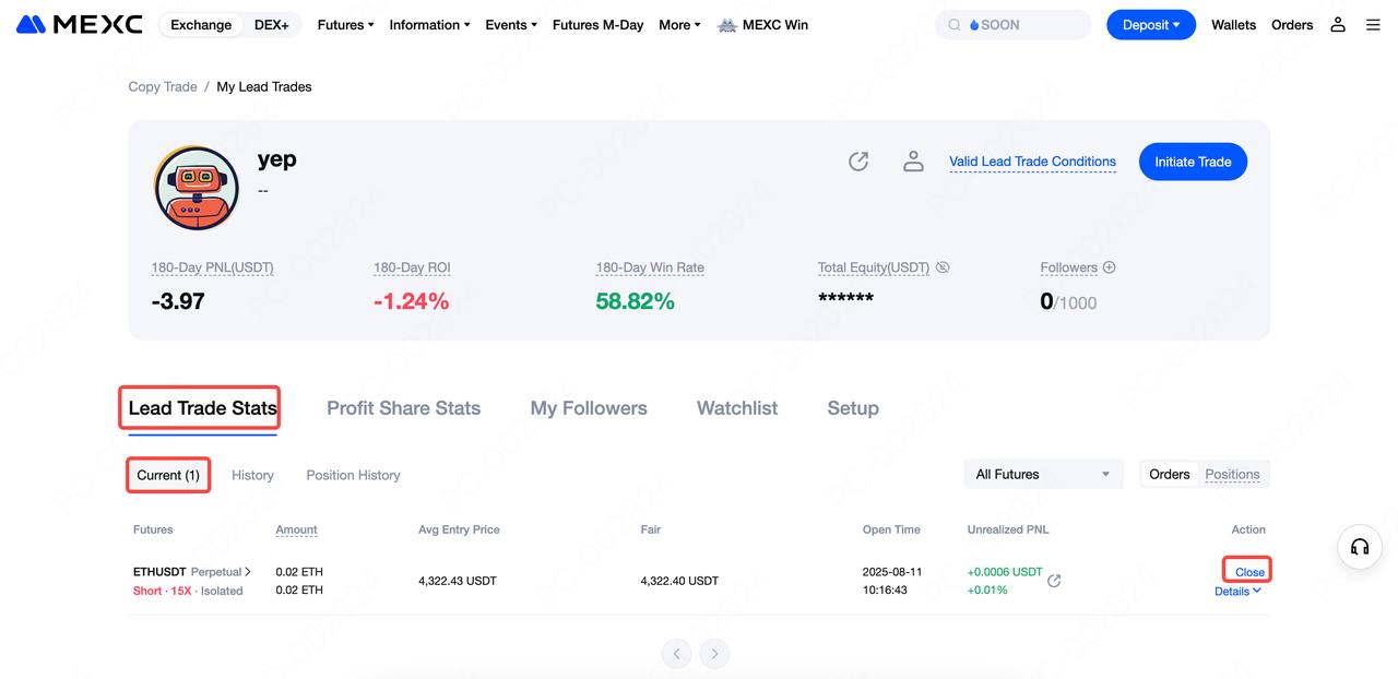 Auf der Meine Lead-Handel-Seite können Sie Ihre Lead-Handel-Statistiken, Gewinnbeteiligungen, Follower, Beobachtungsliste und individuelle Einstellungen wie Ihren Spitznamen, Biografie, Avatar und Copy-Trading-Paare verwalten.