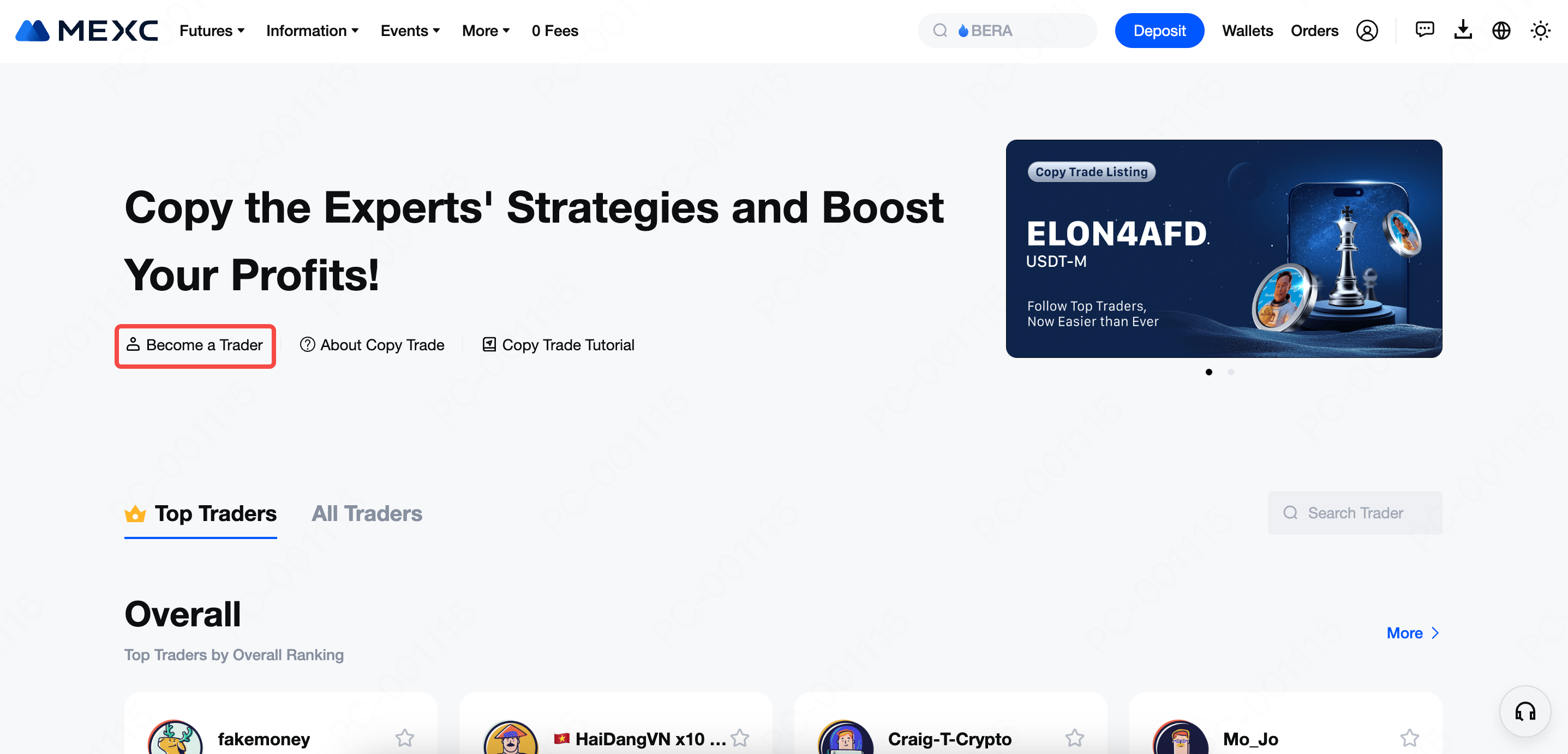 Sobald Sie auf der Copy-Trade-Seite sind, klicken Sie auf Händler werden.