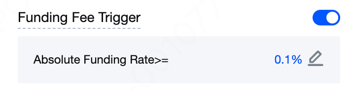 Wenn der Trigger für Finanzierungsgebühren aktiviert ist und für Ihre Position eine Finanzierungsgebühr anfällt sowie der Absolutwert der Finanzierungsrate größer oder gleich dem von Ihnen festgelegten Schwellenwert ist, erhalten Sie eine Benachrichtigung per E-Mail und In-App-Nachricht. Diese Einstellung gilt sowohl für USDT-M- als auch für Coin-M-Futures.