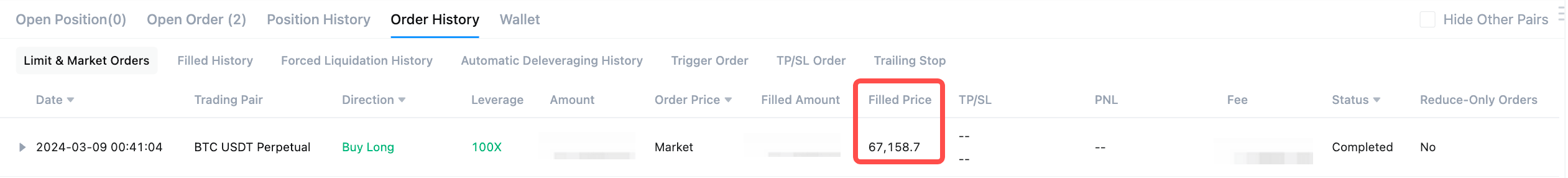 Ähnlich wie bei einem Limitauftrag: Ein Post-Only-Auftrag zum Long schließen/Short schließen kann nur zum letzten Preis oder einem günstigeren Preis ausgeführt werden (d. h. mit Gewinn).