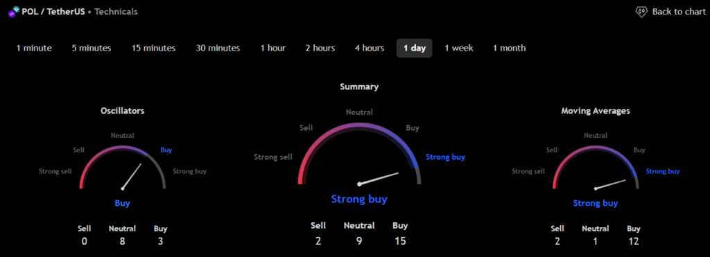 The technical analysis indicators such as Relative Volume (RVOL), Moving Average (MA), and Relative Strength Index (RSI) of POL (prev. MATIC) are shown in the chart below.