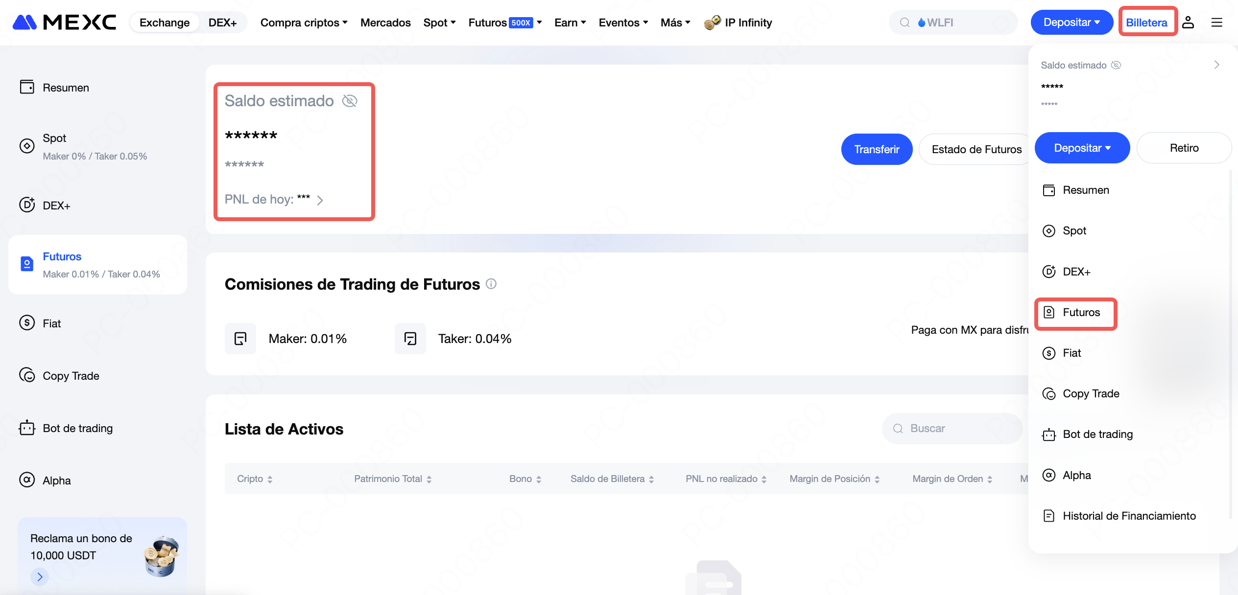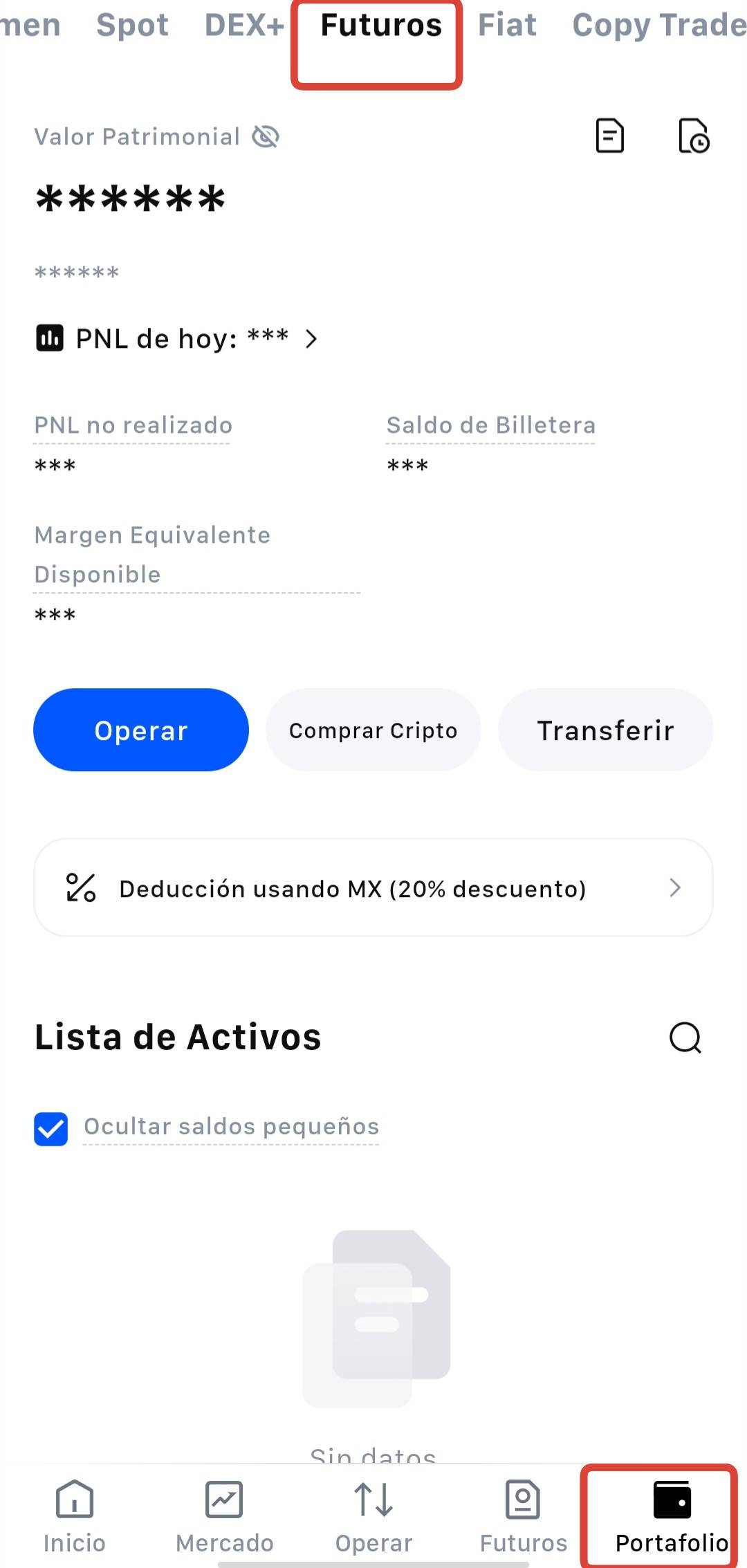 Los usuarios también pueden ver los activos en Billetera → Futuros.
