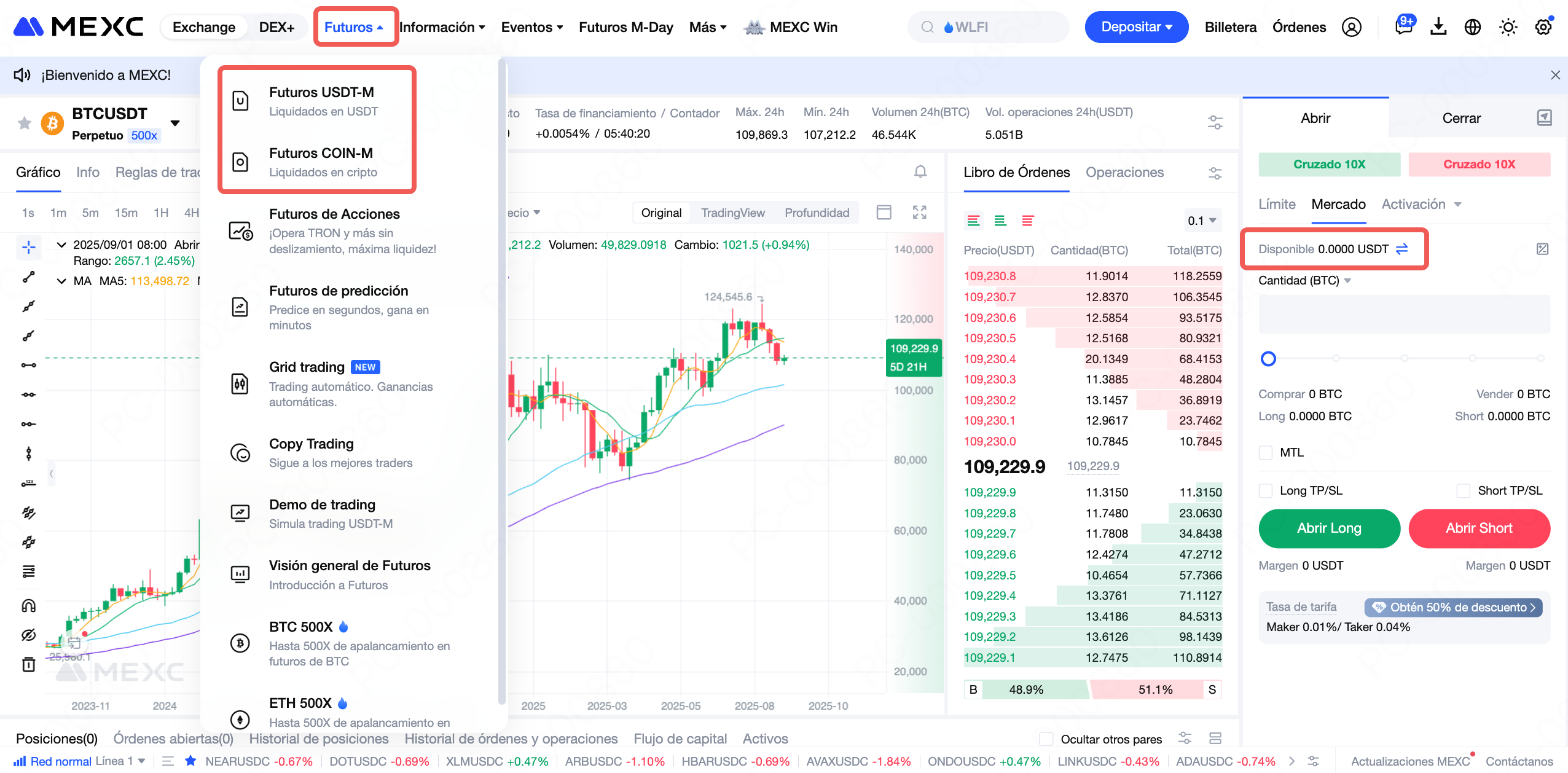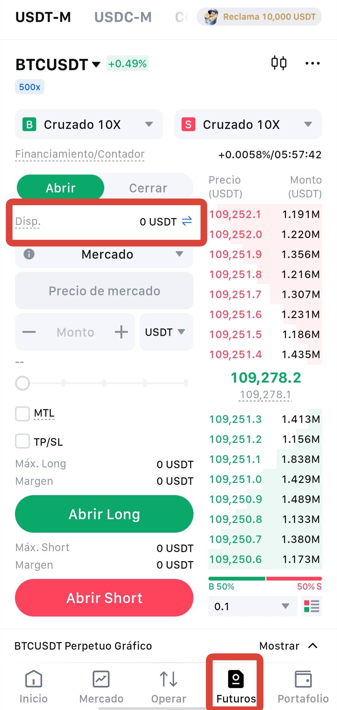Los usuarios pueden ver los activos disponibles en la sección Disponible de la interfaz de trading de futuros.