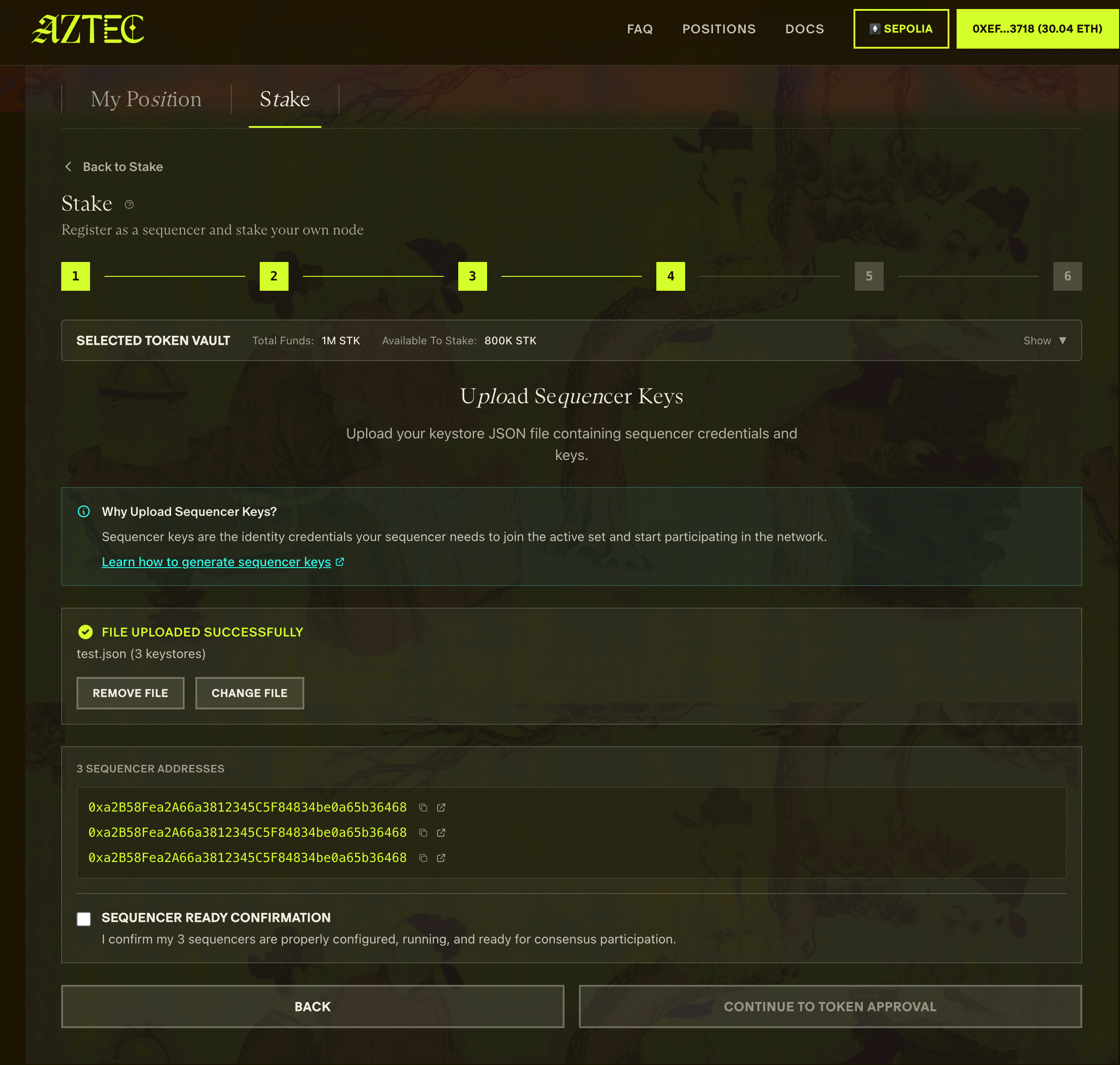 Los Sequencers se unen haciendo staking de tokens AZTEC y entrando en una cola de entrada, con selección de comité a través de muestreo pseudoaleatorio.