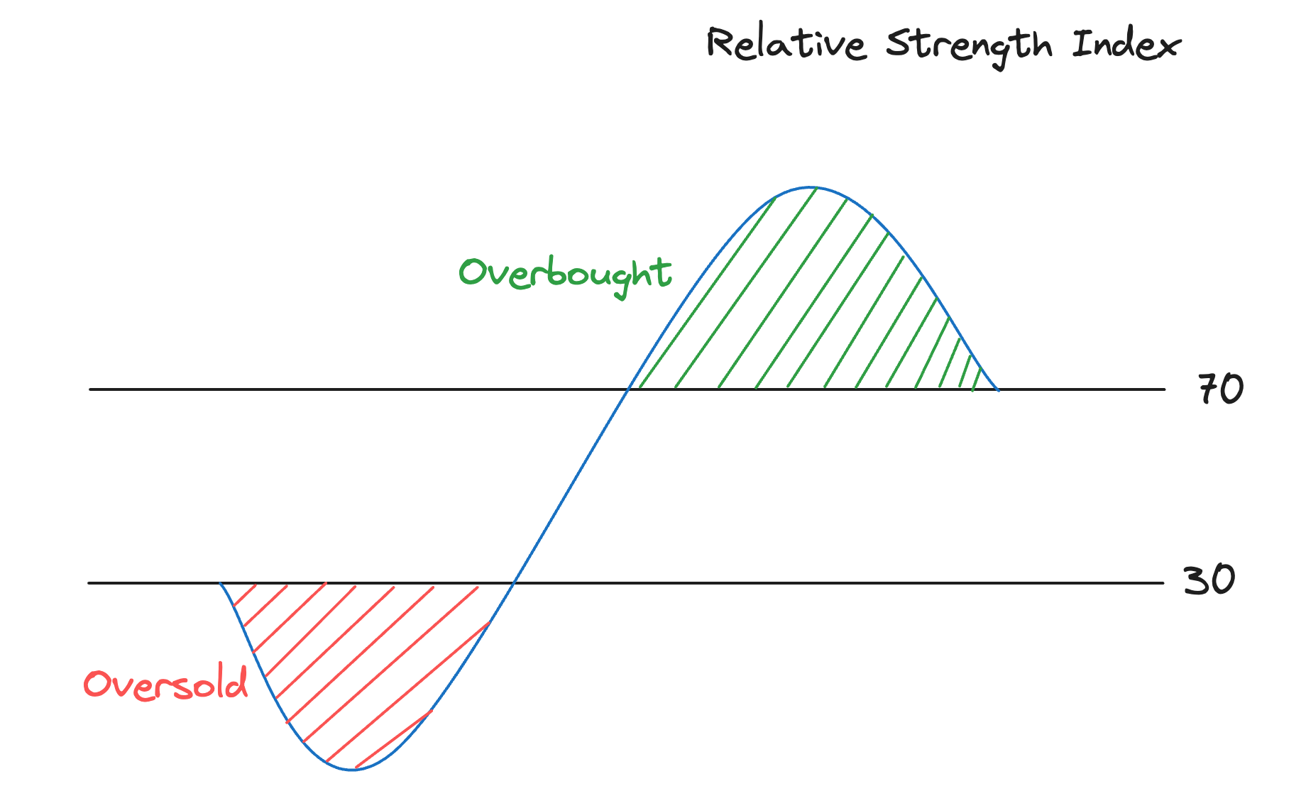 شاخص قدرت نسبی (RSI) یکی از اندیکاتورهای پرکاربرد تحلیل مومنتوم است که برای سنجش سرعت و میزان تغییرات قیمت بهکار میرود. این شاخص شرایط اشباع خرید (Overbought) و اشباع فروش (Oversold) را شناسایی میکند و بر اساس میانگین سودها و زیانهای اخیر، عددی بین 0 تا 100 تولید میکند.