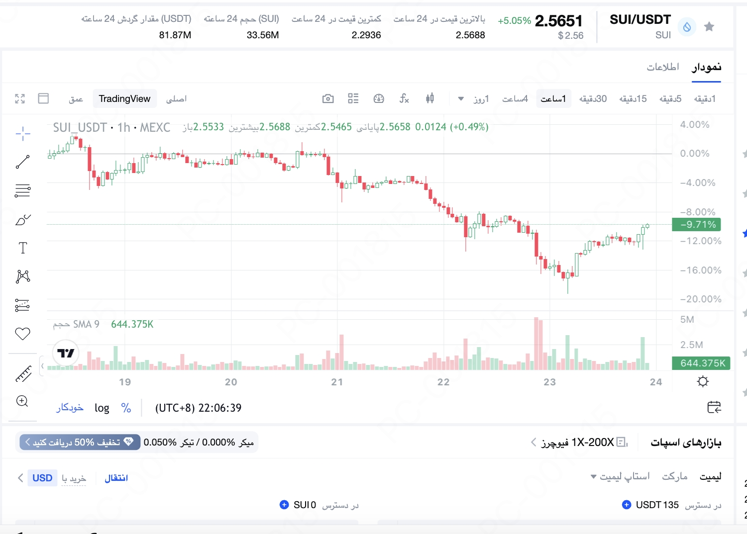 نام توکن SUI را در نوار جستجو، جستجو کنید و معاملات اسپات یا فیوچرز را انتخاب کنید. نوع سفارش را انتخاب کنید، مقدار و قیمت را وارد کنید و تراکنش را تکمیل کنید.