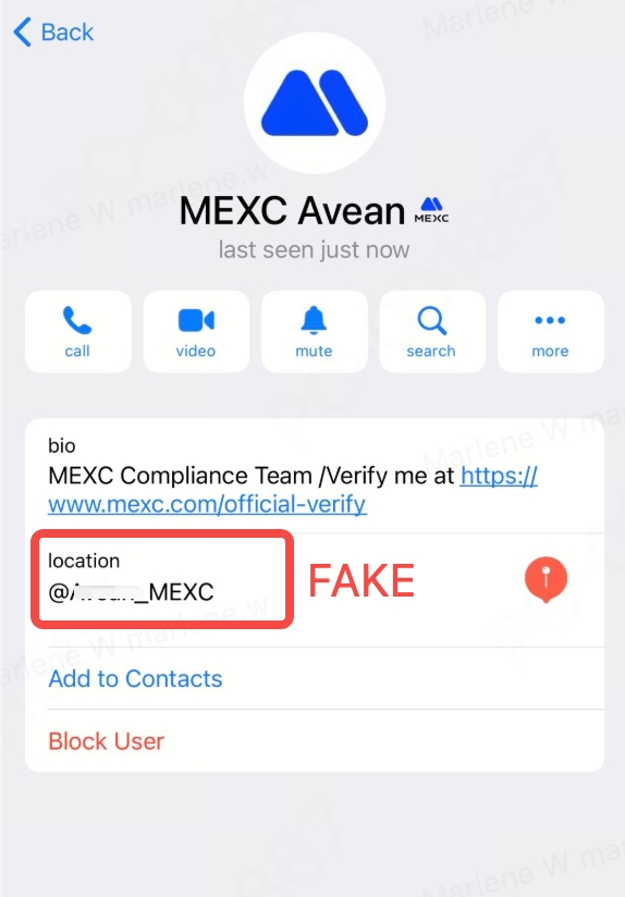 Seiring dengan meningkatnya minat global terhadap aset digital, kami telah menerima laporan dari pengguna mengenai aktivitas penipuan yang dilakukan oleh individu yang mengaku sebagai MEXC. Penipuan ini melibatkan penelepon yang menyamar sebagai perwakilan Layanan Pelanggan MEXC atau manajer akun VIP yang menghubungi melalui telepon, Telegram, atau platform media sosial lainnya untuk memikat pengguna ke komunitas palsu. Khususnya, dengan mengubah biodata, nama tampilan, atau lokasi, mereka menyamar sebagai staf resmi MEXC untuk memikat pengguna ke grup palsu. Grup-grup ini mungkin menyelenggarakan siaran langsung yang menjanjikan panduan investasi atau meminta pengguna untuk mentransfer aset digital ke alamat tertentu.