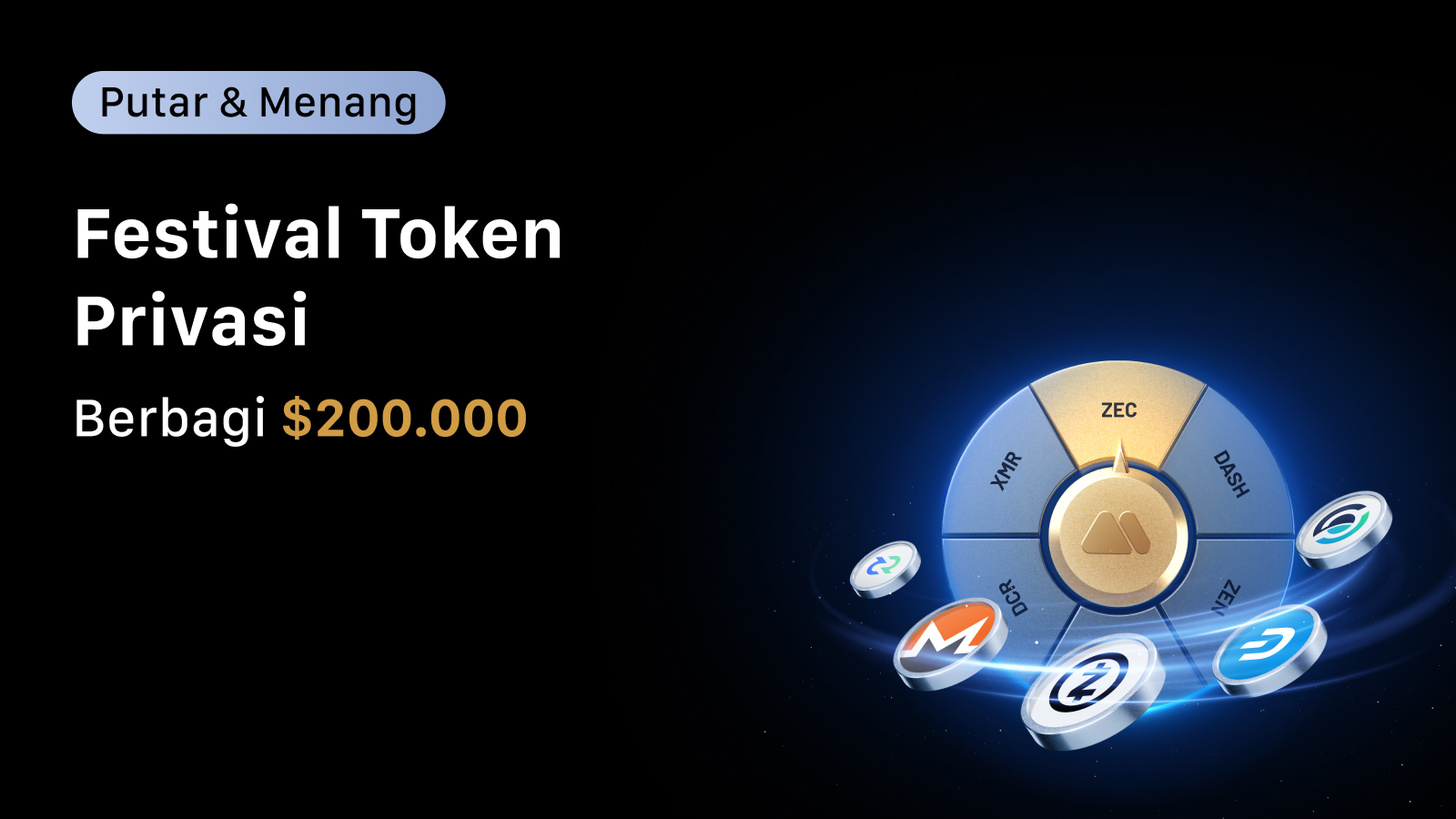 Total hadiah telah meningkat menjadi $200.000 dalam token privasi populer, termasuk ZEC, XMR, DASH, DCR, dan banyak lagi! Selesaikan tugas untuk mendapatkan putaran & putar roda untuk mengklaim hadiah Anda!