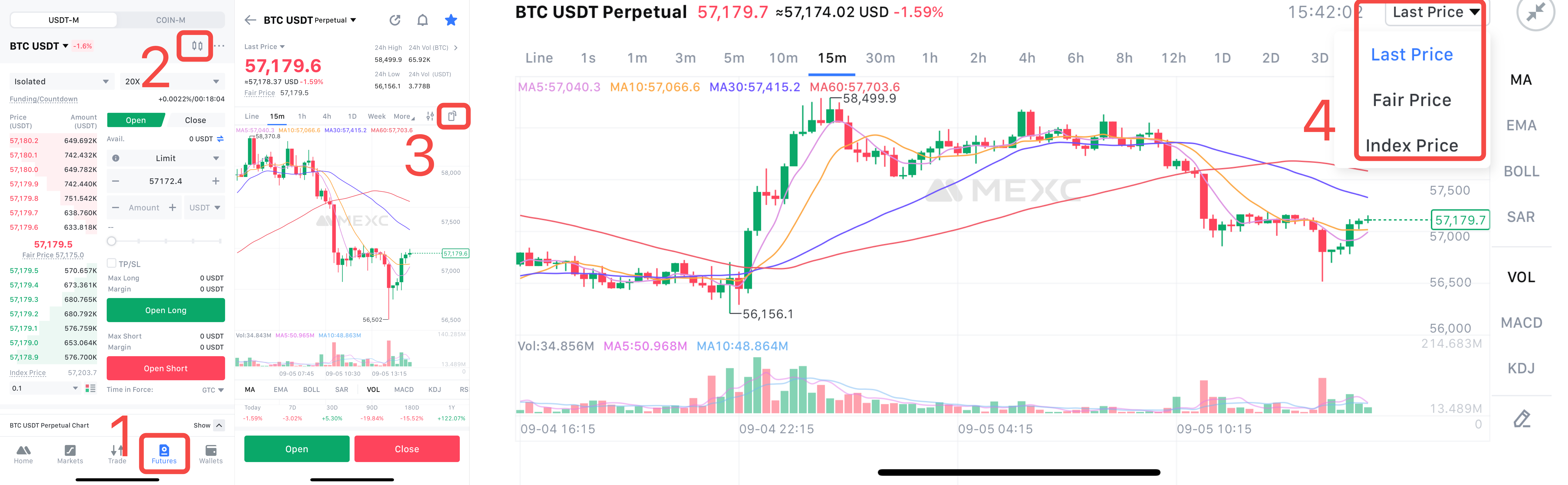 2) Pada halaman perdagangan Futures, ketuk ikon candlestick di sudut kanan atas.