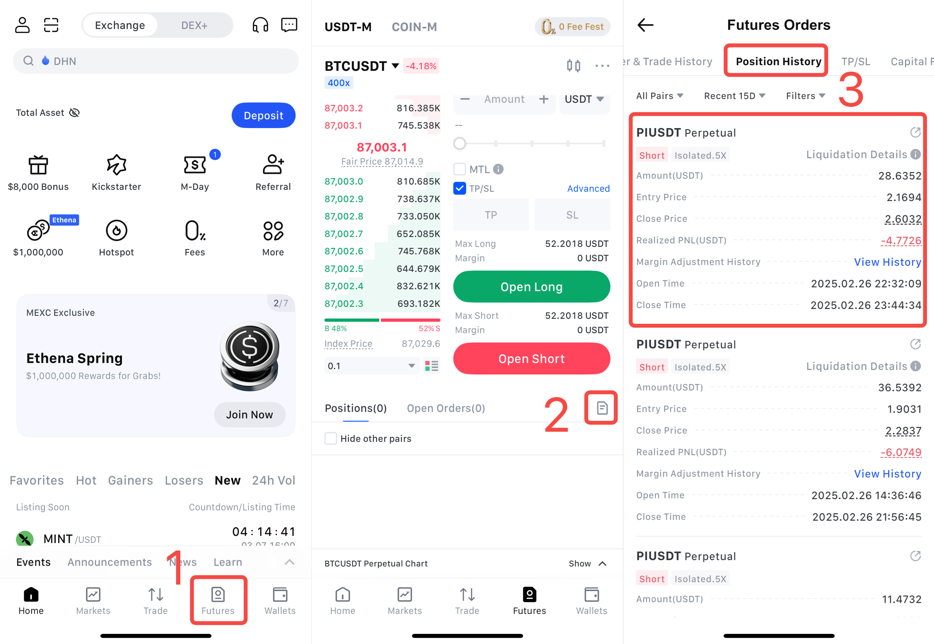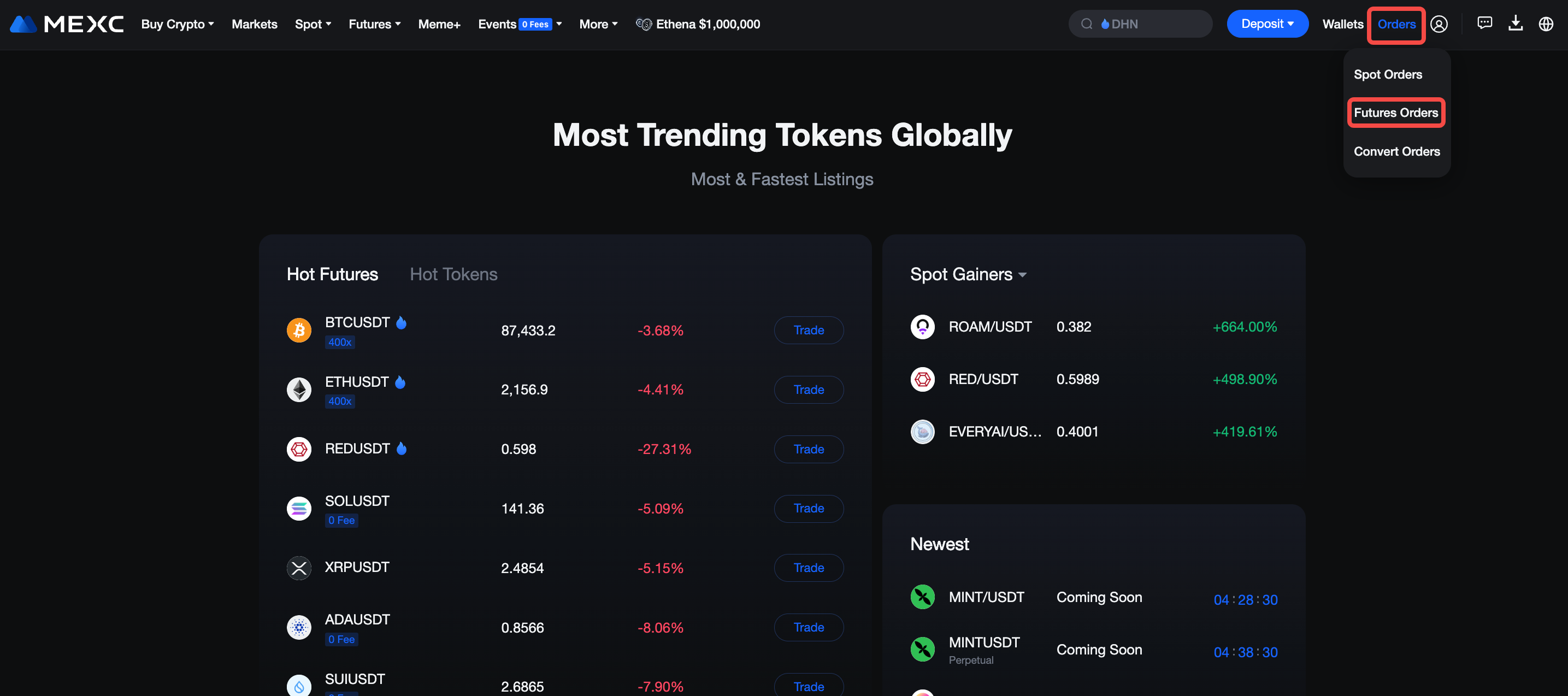 1)Masuk ke Aplikasi MEXC, lalu klik Futures di bagian bawah untuk masuk ke halaman Perdagangan Futures.
