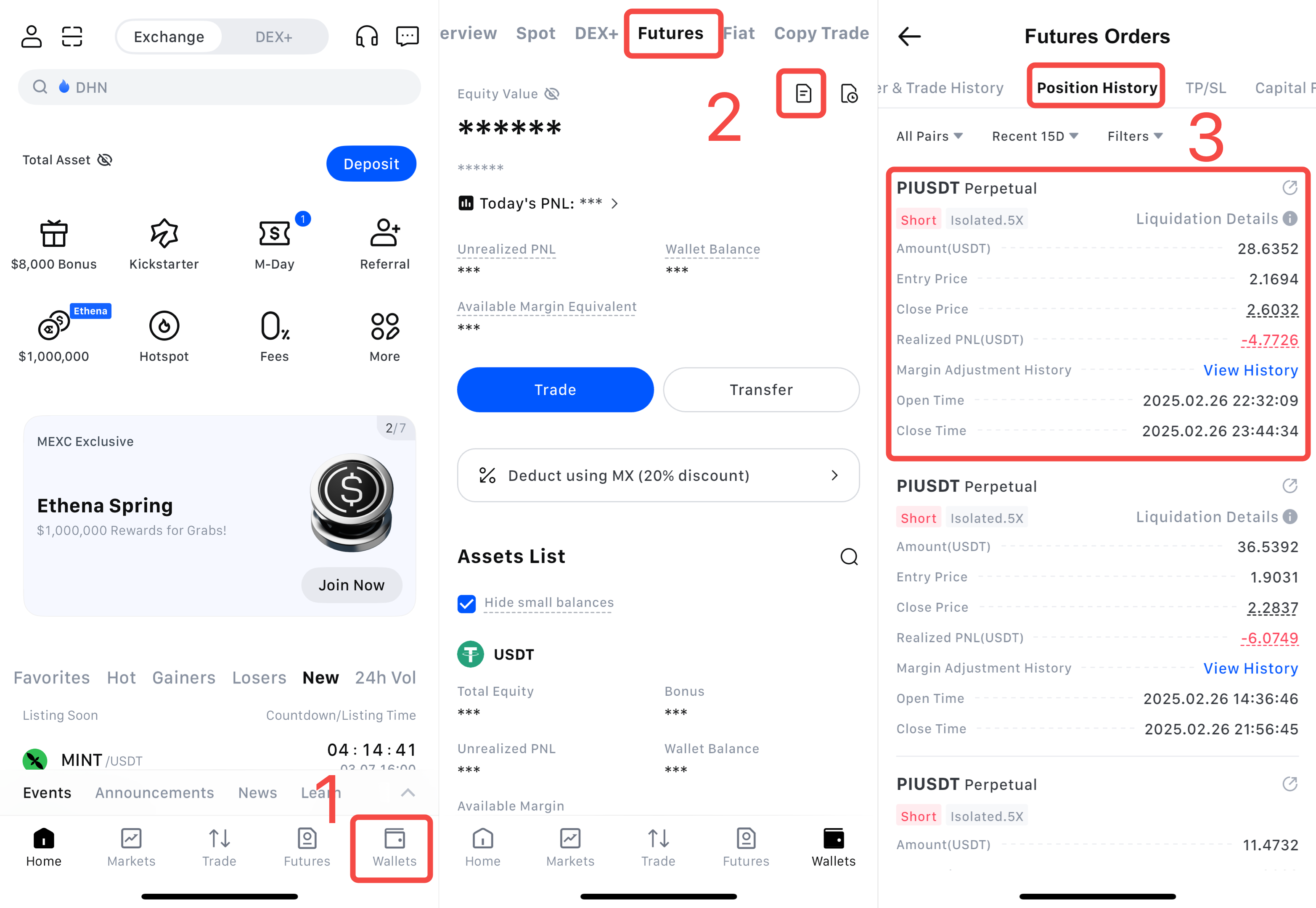 3)Periksa order Anda yang telah dilikuidasi dalam Riwayat Posisi.
