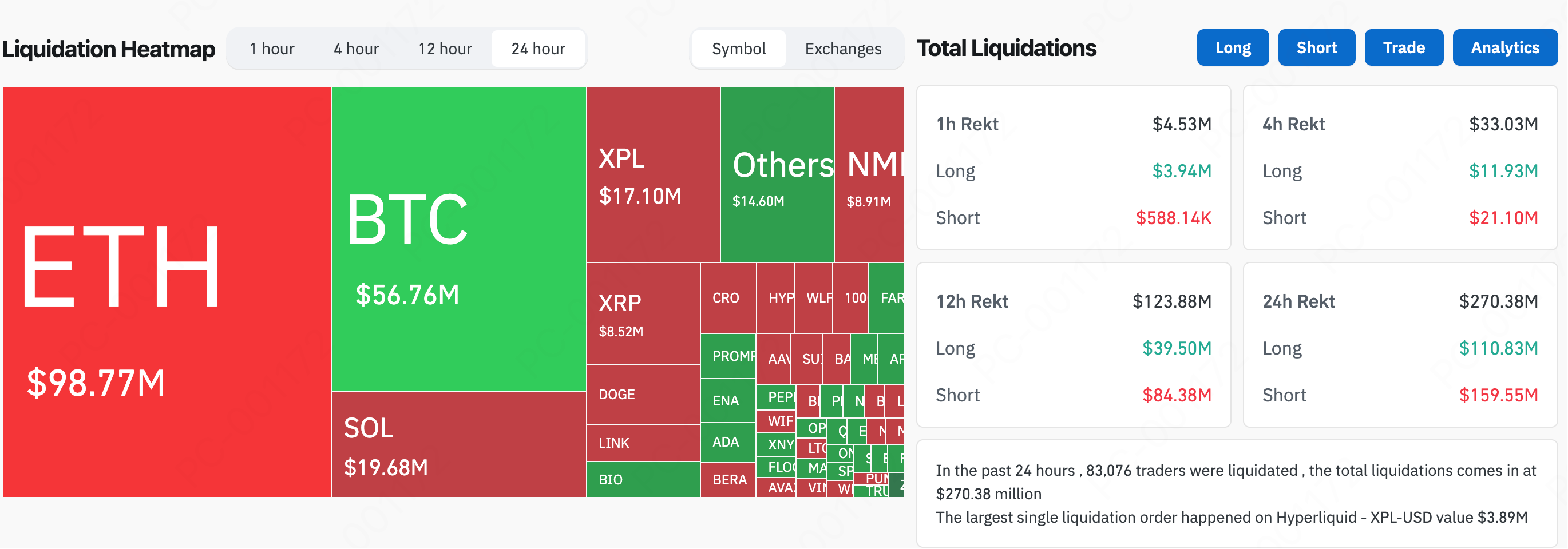 Efek short squeeze di pasar option merupakan katalisator yang paling langsung. Menurut data Coinglass pada 27 Agustus, likuidasi dalam 24 jam terakhir mencapai $270 juta dengan mayoritas terkonsentrasi pada posisi short. Sejumlah besar pedagang ETH bearish terpaksa menutup posisi mereka, sehingga memperkuat momentum kenaikan dan mengubah reli menjadi short squeeze penuh.