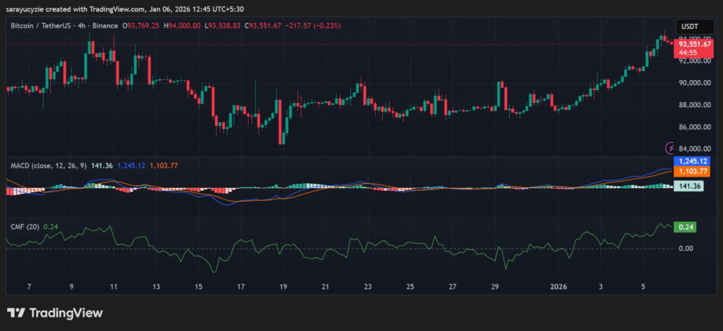 Pada grafik 4 jam, Bitcoin menunjukkan minat beli yang kuat, dengan harga didominasi oleh candle yang bergerak naik. Ini bisa naik dan menemukan resistensi utamanya sekitar $93,8K. Keuntungan lebih lanjut akan memberikan tekanan kenaikan tambahan, dan dengan golden cross, kemungkinan akan mengirim harga di atas $94,1K.