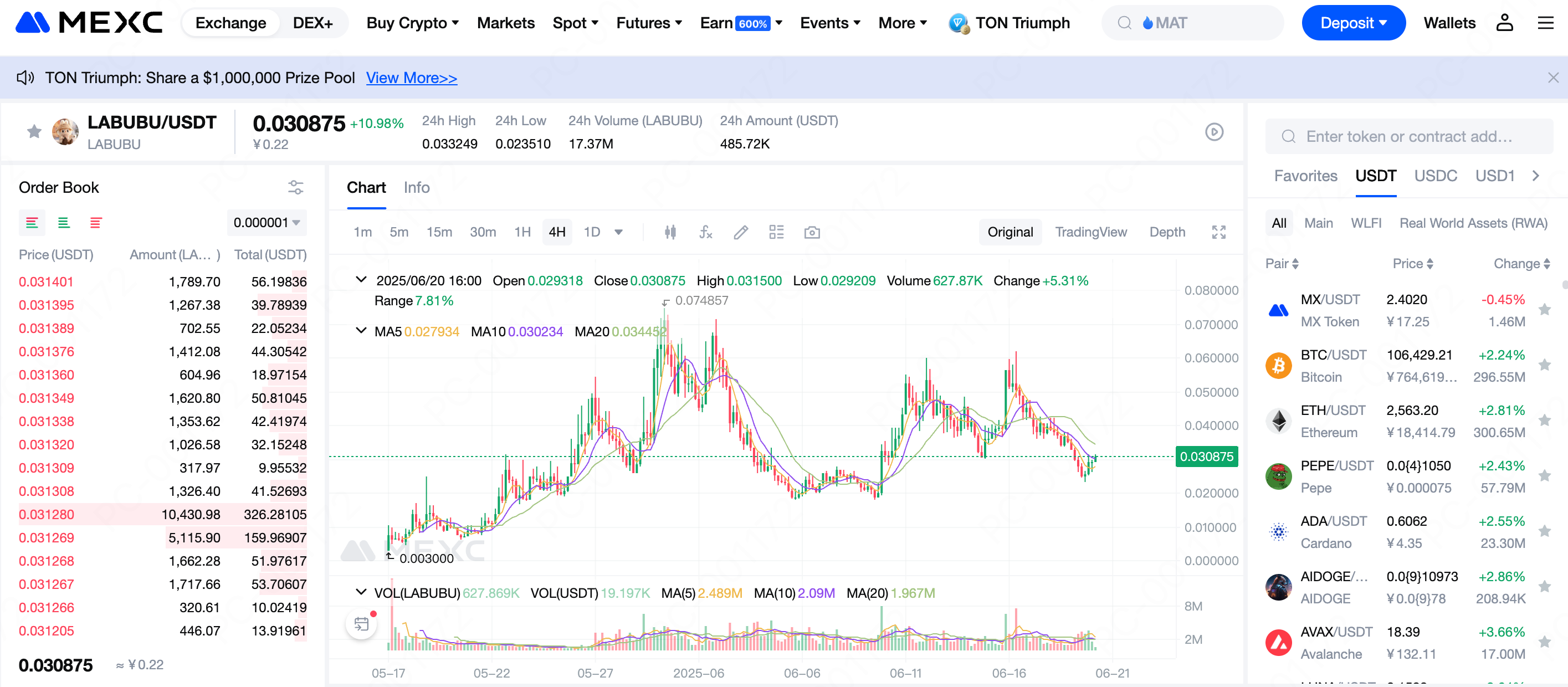 In questo contesto di mercato, gli utenti interessati a fare trading su LABUBU dovrebbero prendere in considerazione l'exchange MEXC. Nota per l'efficiente processo di listing dei token, le commissioni di trading basse e altamente competitive e l'eccezionale liquidità, MEXC si è guadagnata la fiducia e la preferenza di molti investitori, diventando una piattaforma privilegiata per entrare nel settore delle criptovalute.