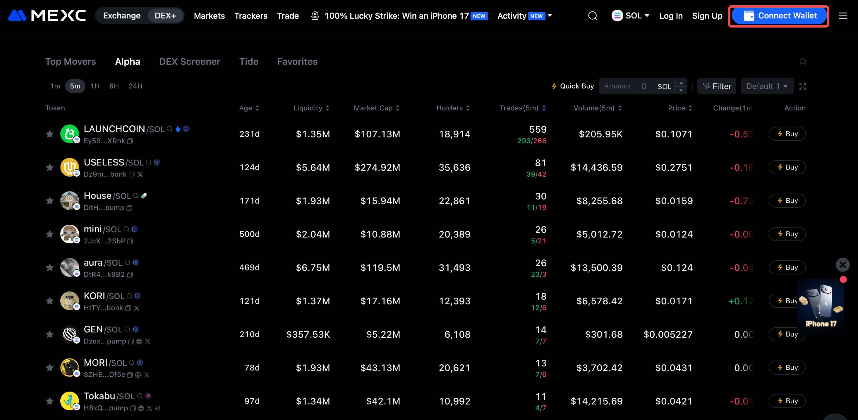 1) Apri MEXC DEX+ e collega il tuo portafoglio.