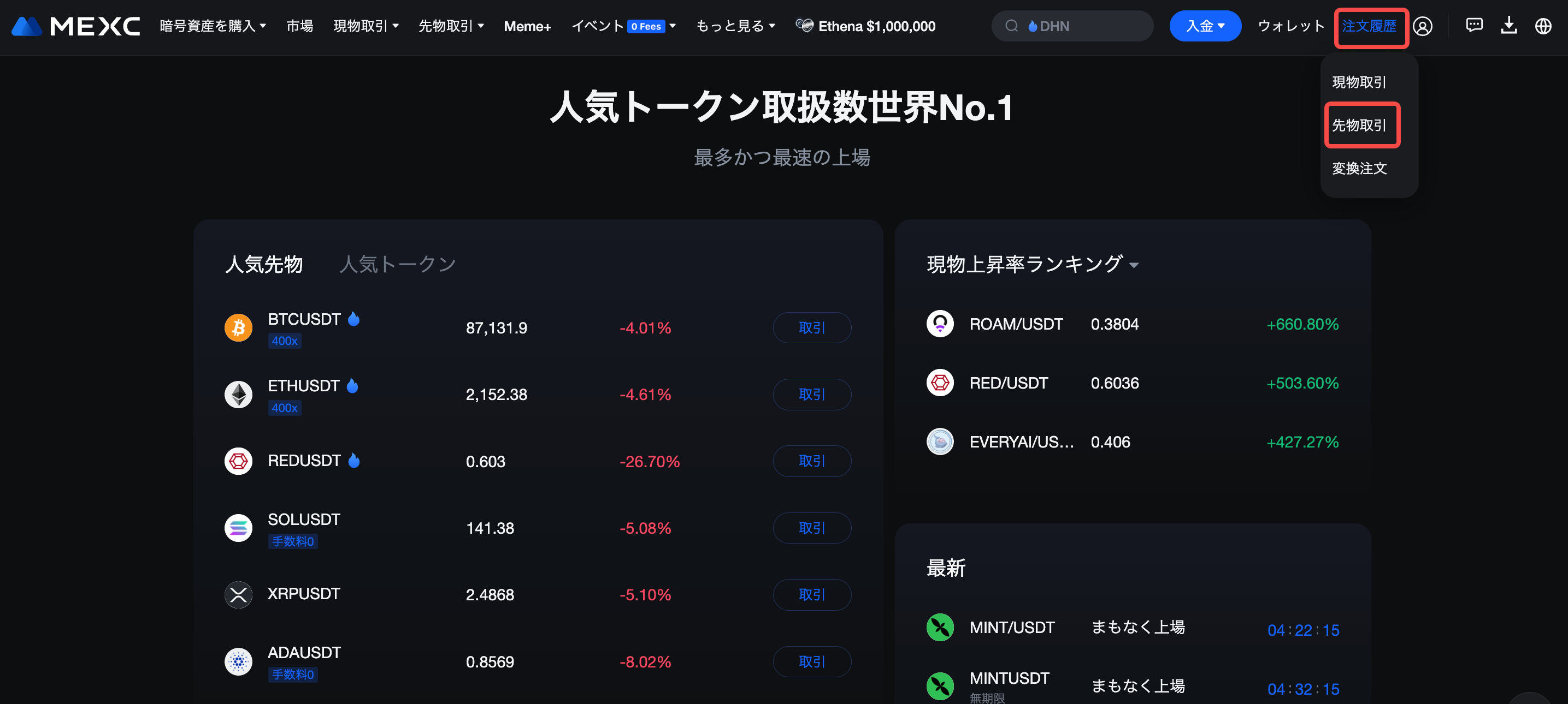 1)MEXCアプリにログインし、下部にある [先物取引] をクリックして先物取引ページを開きます。