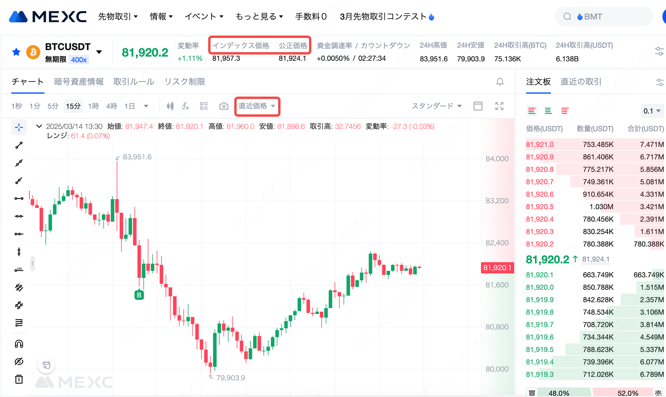 MEXCでは、公正価格をもとに強制決済がトリガーされます。公正価格が強制決済価格に達すると、強制決済メカニズムが発動します。公正価格を基準とすることで、市場の安定性が向上し、市場が異常な変動を見せた際の不要な強制決済を減らすことができます。