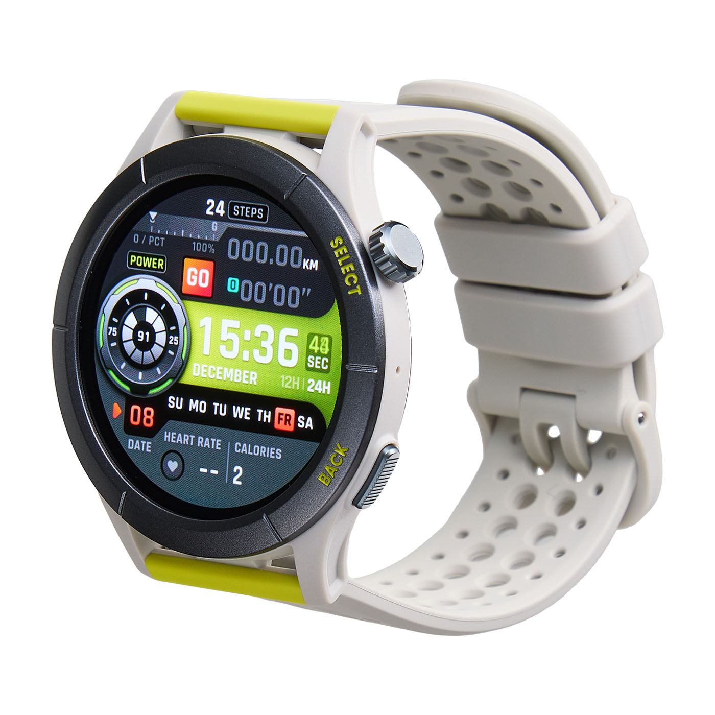 多数のスマートデバイスを販売する大手メーカー、Zepp Healthの「Amazfit Cheetah」。2023年7月に発売された同ブランド初のランナー向きスマートウォッチのスタンダードモデルで、ボディには軽量な繊維強化ポリマー製ミドルフレームが採用されています。距離測定の正確さの検証では、ランニングコースで平均誤差約2.7%・トラックで平均誤差約1.8%。木や建物などの障害物があるランニングコースではやや誤差があったものの、記録に大きな影響が出るほどではないでしょう。心拍数測定のズレのなさの検証では、専門機器との平均誤差は約0.2%。今回検証した商品のなかでもトップクラスの測定精度で、120~180bpmすべての計測で誤差1%未満と非常に優秀でした。運動パフォーマンスの分析や、トレーニング内容のコントロールに役立つ運動強度を正確に測定できます。ワークアウトメニューは、初期設定で右下の「BACKボタン」を1回押せば開けるので非常に簡単。また、盤面によっては画面の「GO」や「ワークアウトアイコン」をタップして開くことも可能です。ワークアウトメニューの一番上にはランニングが設定されているため、ホーム画面から「SELECTボタン」を3回連打するだけでランニングデータの測定を開始できます。ワークアウト画面の表示は充実しており、心拍数・距離・タイム・速度・高度などさまざまな情報を確認できます。画面をカスタマイズすれば、1画面に最大7つの項目を表示可能。すべての記録はあとからスマホのアプリで確認できるので、運動中に確認したい情報のみ表示させるのもよいでしょう。画面には1.45インチのAMOLED(有機EL)タッチディスプレイを搭載。色鮮やかで大きな画面で視認性は良好です。タッチ操作が可能で、スマホのように直感的に操作できます。タッチ操作以外にも、サイドにある2つのボタンでも操作ができ、竜頭型の「SELECTボタン」は回転させることで画面のスクロールが可能です。汗や砂で手が汚れていても、画面を触らずに操作できますよ。音楽機能では、スマホで再生されている音楽のコントロールができるうえに、本体に音楽を直接保存して再生も可能。事前にスマホから音楽を取り込む手間が必要ですが、音楽再生がランニングウォッチ本体で完結するため、ランニングにスマホを持ち出す必要がなくなりますよ。LINEやメールの通知機能やウォッチ単体での通話機能など、スマートウォッチとしての機能も充実しています。