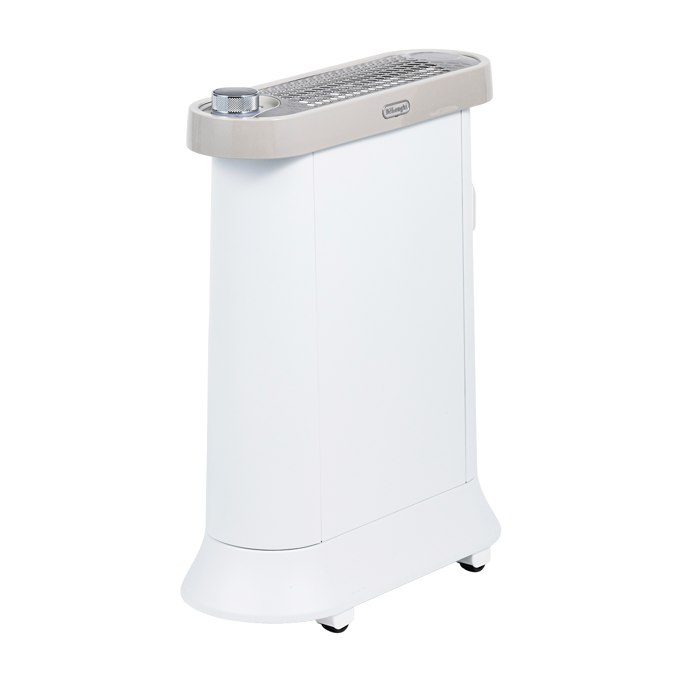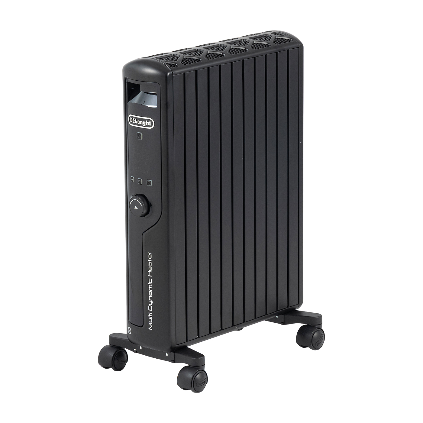 デロンギ・ジャパンの「DeLonghi マルチダイナミックヒーター MDHU15-PB」は、シンプルなデザインで、高性能かつ室温をキープしやすいものがほしい人におすすめ。同社のオイルレスヒーターのうち、従来からあるオイルヒーターに近いシンプルな外観のモデルです。検証では、室温12℃から20℃に到達するまでの時間は平均26分と、スピーディに暖まりました。室温調整のしやすさは検証したなかでトップクラスで、20℃に達してから45分間の室温は平均22.5℃をキープ。安定運転に入ってからも設定温度に近い温度を維持しており、こまめな温度調節が必要ないのは便利です。20℃に到達するまでの電気代は8.7円に抑えられており、20℃に達してからも10.9円と特別高くはありません。安定運転に移行してからも電気代が跳ね上がらないのはうれしいポイントです。安全機能も充実しています。稼動中の本体温度は上部・側面ともに60℃台で、サッと触れるくらいならやけどの心配は少ないレベルです。側面カバーに加え、転倒オフスイッチ・チャイルドロック・過熱防止装置などを搭載。子どもが小さかったり、高齢な家族がいたりする場合も、安全に配慮しながら使えます。24時間タイマーがあるほか、スケジューリング機能も搭載。ただし、スケジュールは1パターンのみで、平日と休日で別パターンの設定はできません。また、本体側ではタイマー設定・温度設定ともにダイヤル式ですが、リモコンの場合はボタンで行うため目的の温度が表示されるまでボタンを連打する必要があります。機能性や操作性は上位モデルにおよびませんが、暖房性能に優れたバランスのよい商品です。電気代を抑えながら使いたい人の選択肢にも入るでしょう。