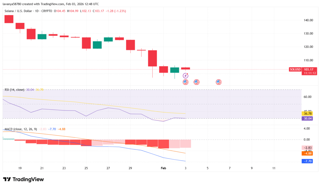 In the last 24 hours, Solana is trading near $103, down about 0.23%, and is also down nearly 17% in a weekly chart. Even the Solana’s 24-hour trading volume is down with 47.95% and stands at $4.15 billion, at the time of writing.