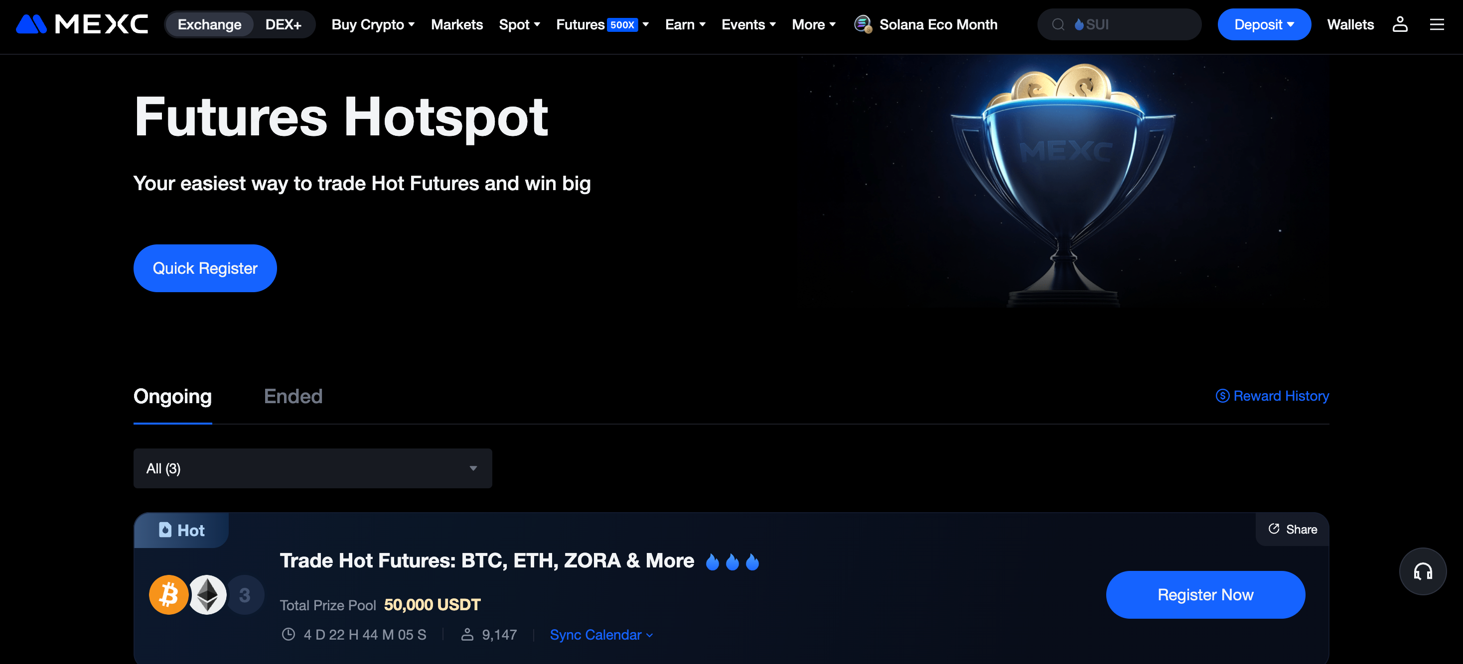 O Hotspot de Futuros é um evento no qual os usuários podem negociar pares de Futuros populares. Ao clicar em Inscrição rápida e negociar os Futuros designados durante o período do evento, os participantes têm a oportunidade de ganhar recompensas em bônus de Futuros.