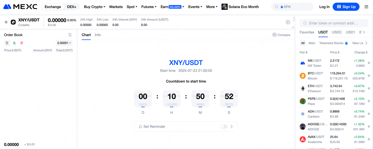 O token XNY está listado agora na MEXC. Visite a MEXC agora e aproveite oportunidades antecipadas e posicione-se neste novo setor promissor! Adquira XNY na MEXC seguindo os seguintes passos: