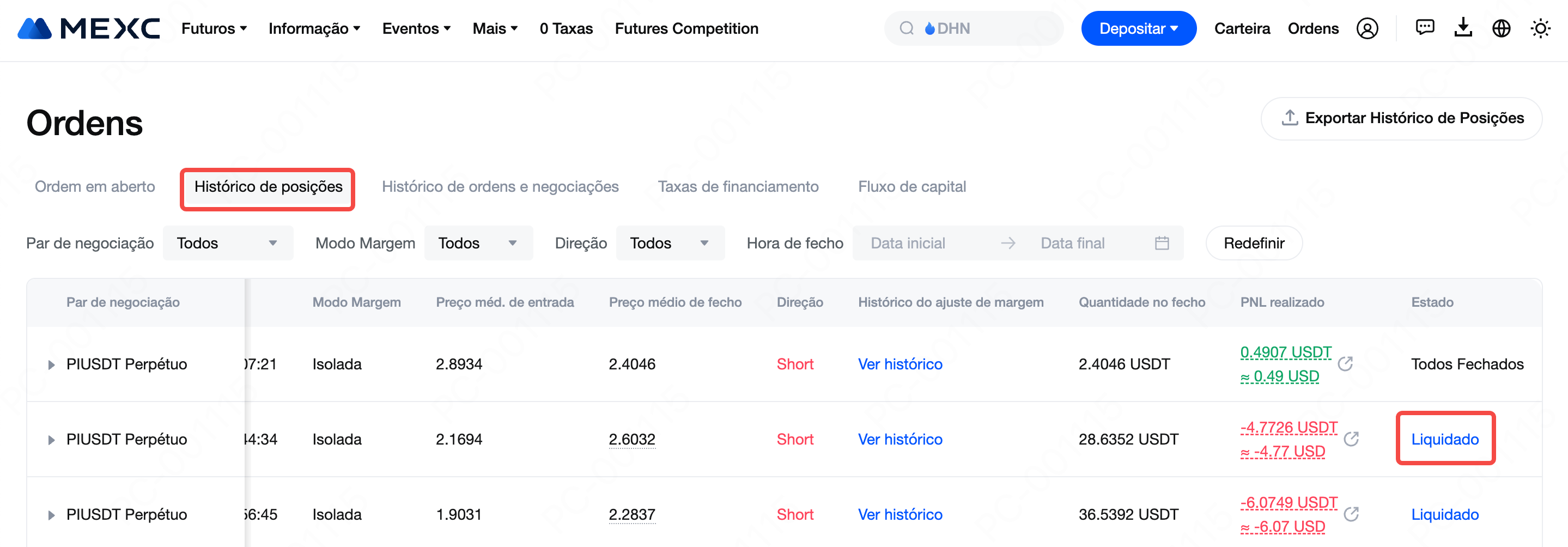 As ordens de liquidação podem ser encontradas na seção Histórico de posições.