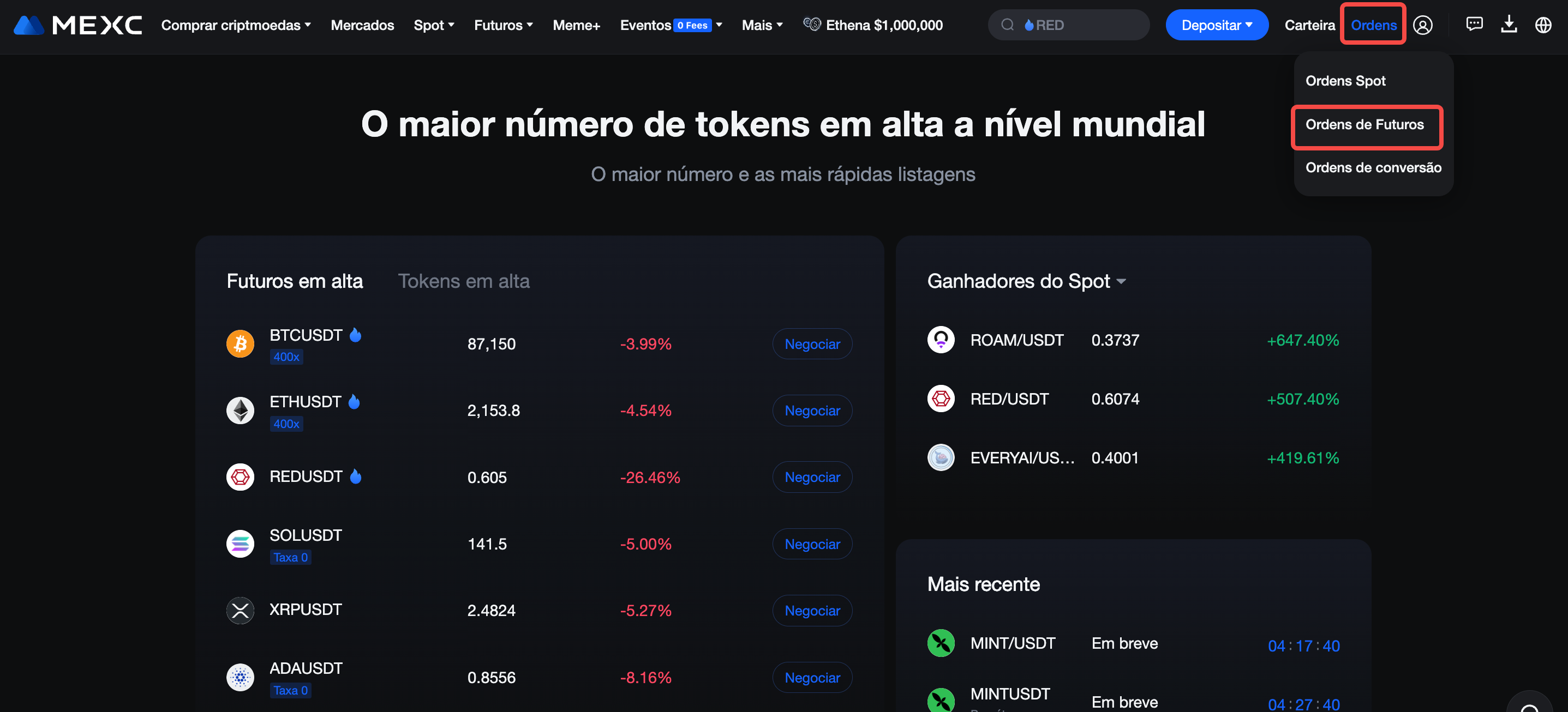 1)Entre no aplicativo da MEXC e clique em Futuros na parte inferior para acessar a página de Negociação de Futuros.