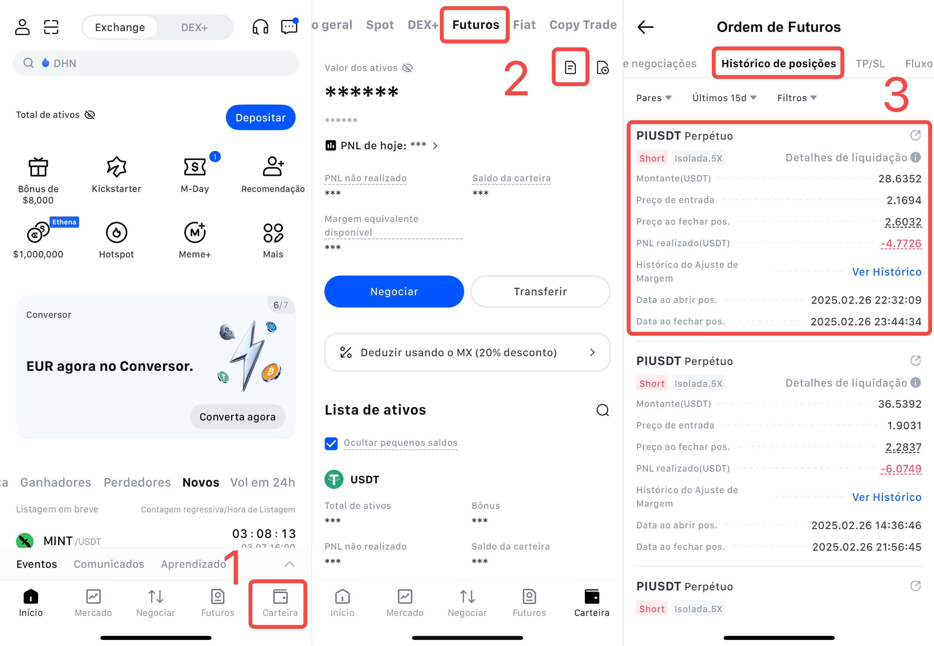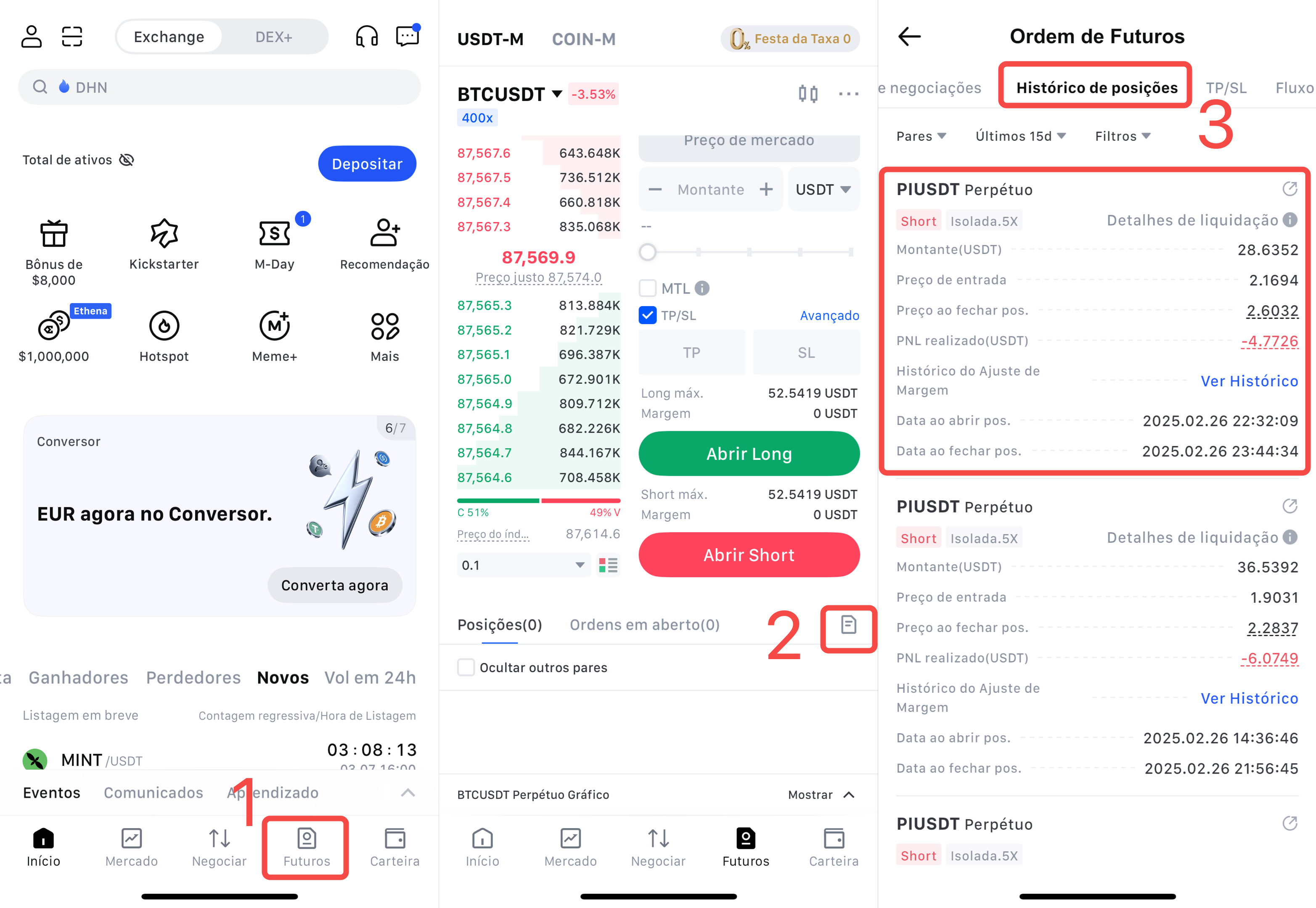 3)Visualize suas ordens de liquidação no Histórico de posições.