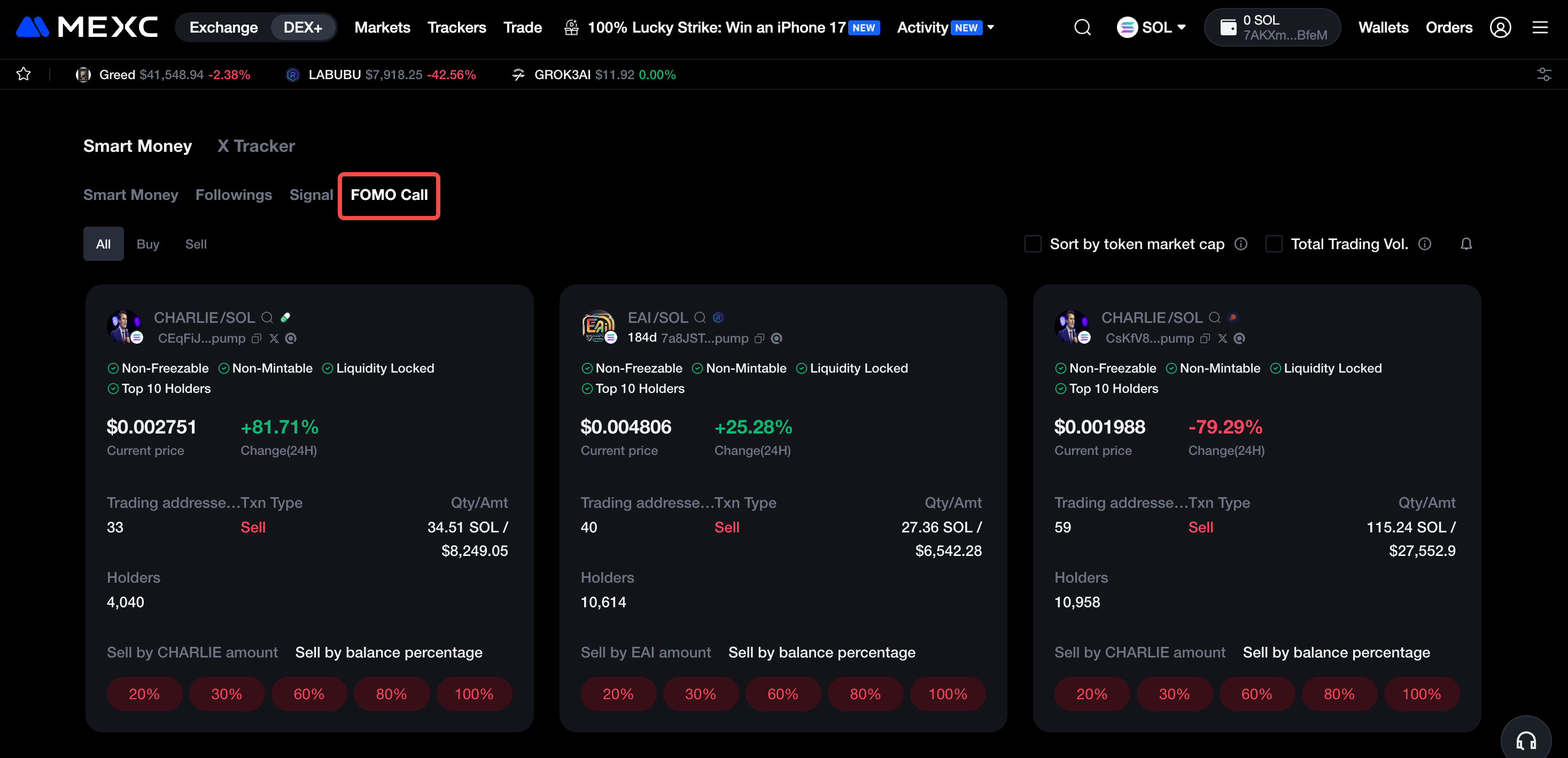 FOMO (Fear of Missing Out) หมายถึงจิตวิทยาของการกลัวที่จะพลาดโอกาส หน้าการโทร FOMO จะติดตามโทเค็นยอดนิยมบนเครือข่ายที่กำลังเติบโตอย่างรวดเร็ว (โทเค็นที่มีปริมาณการซื้อขายที่เพิ่มสูงขึ้น ราคาพุ่งสูงอย่างรวดเร็ว และความรู้สึกของตลาดที่ร้อนแรงเกินไป) โดยช่วยให้คุณมองเห็นโอกาสในการปั๊มราคาในระยะสั้นได้ตั้งแต่เนิ่นๆ