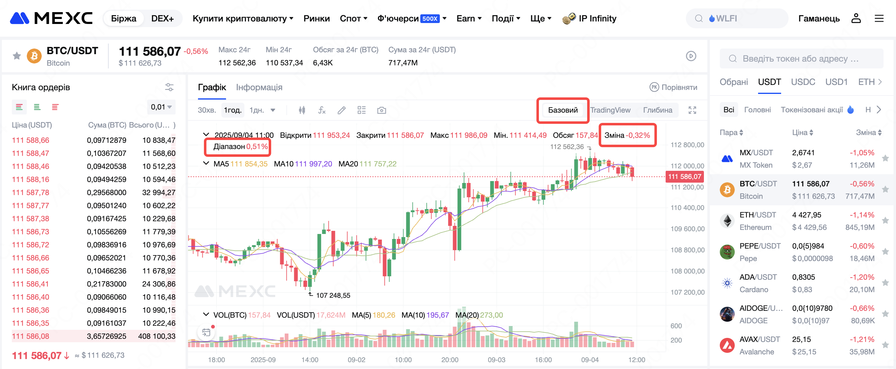 3) Виберіть базовийсвічковий графік: на сторінці торгівлі виберіть базовий свічковий графік для більш чіткої візуалізації руху цін.