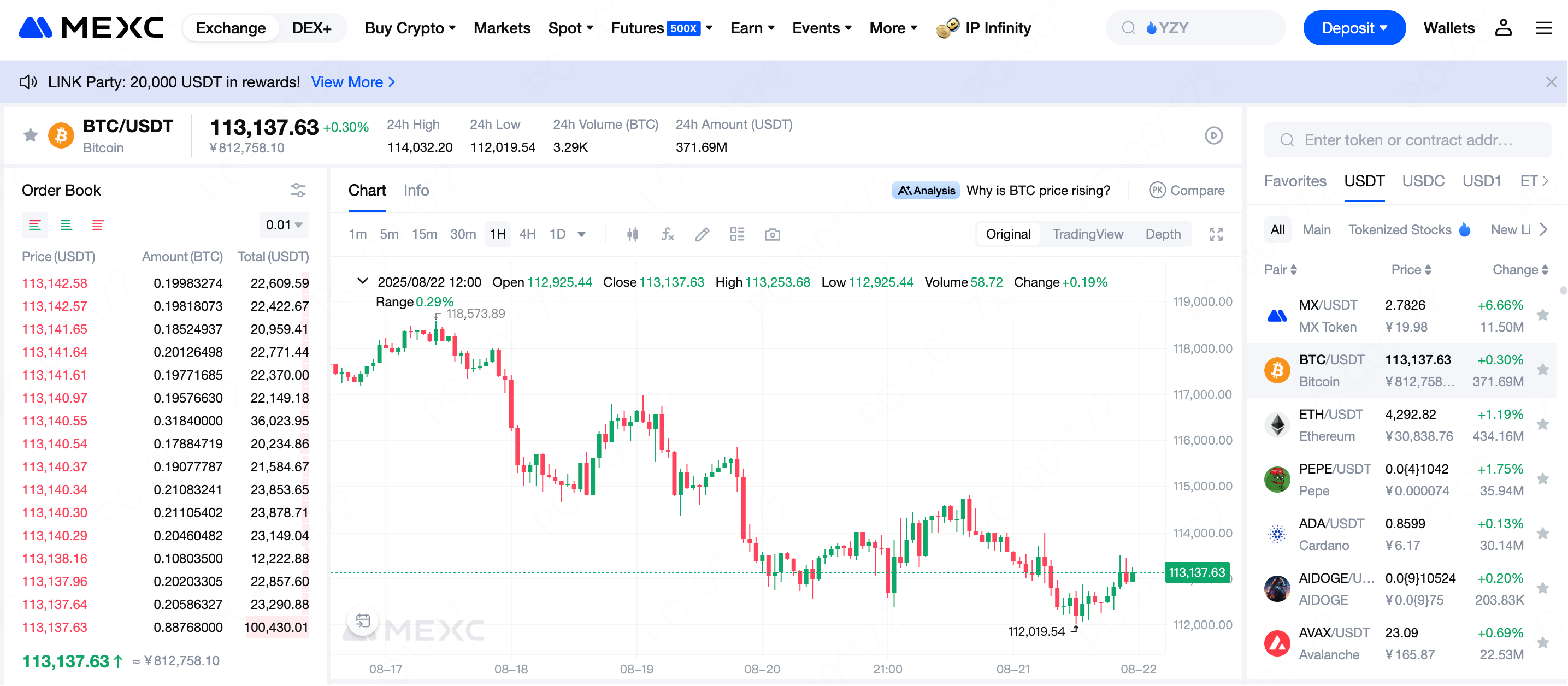 Поточна ціна: 113 137,63 USDT