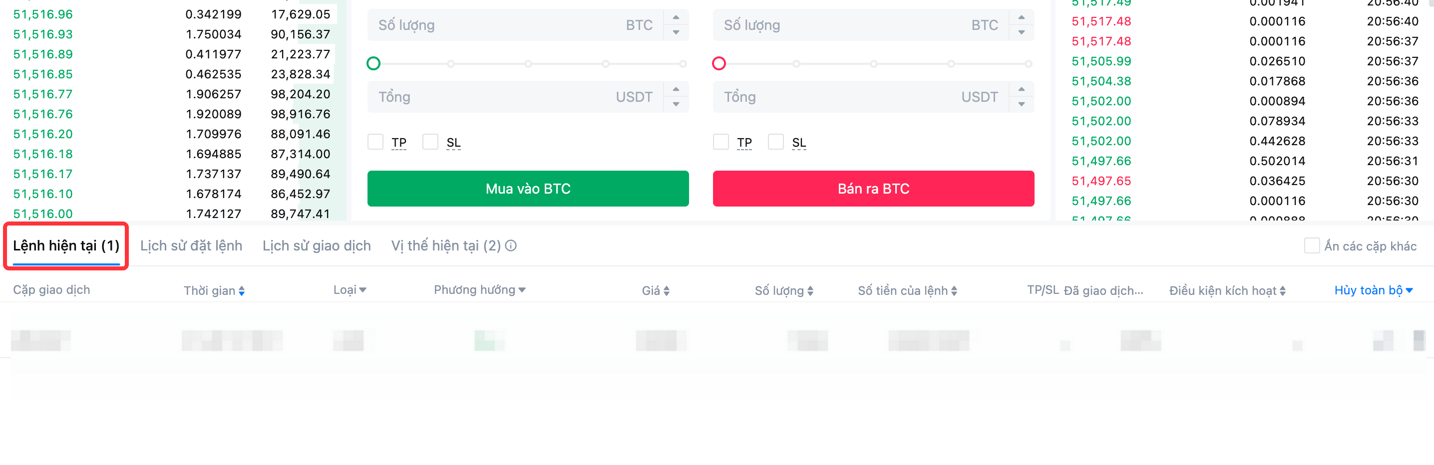 Dựa vào nhu cầu giao dịch của bạn, bạn cần điền Giá giới hạn, Giá kích hoạt, Giá thị trường, Số lượng (BTC) và Tổng số lượng (USDT), sau đó nhấn vào "Bán ra BTC"