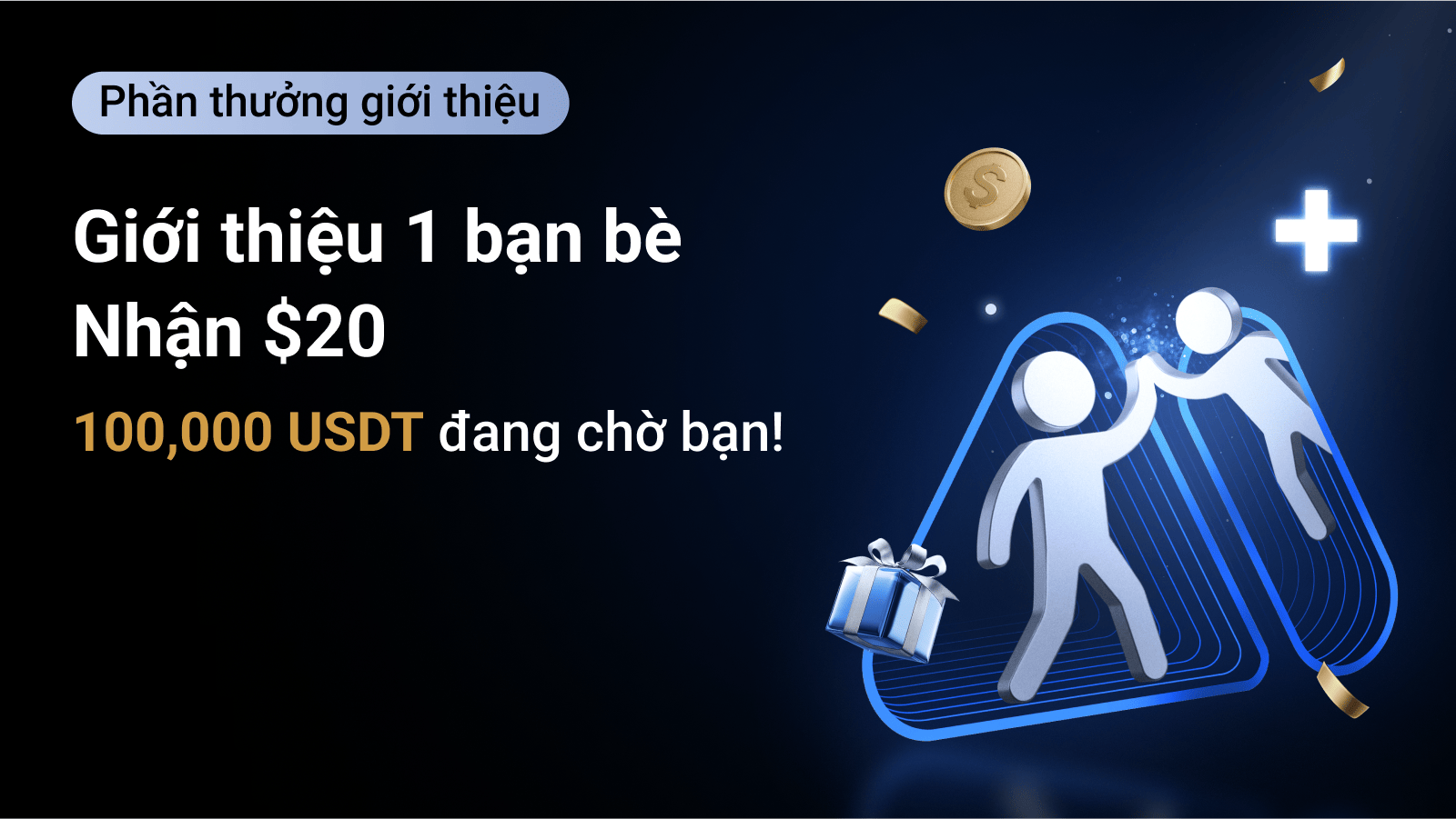 - Khi bạn bè trở thành người được giới thiệu hợp lệ, cả hai đều sẽ nhận được 20 USDT tiền thưởng Futures.