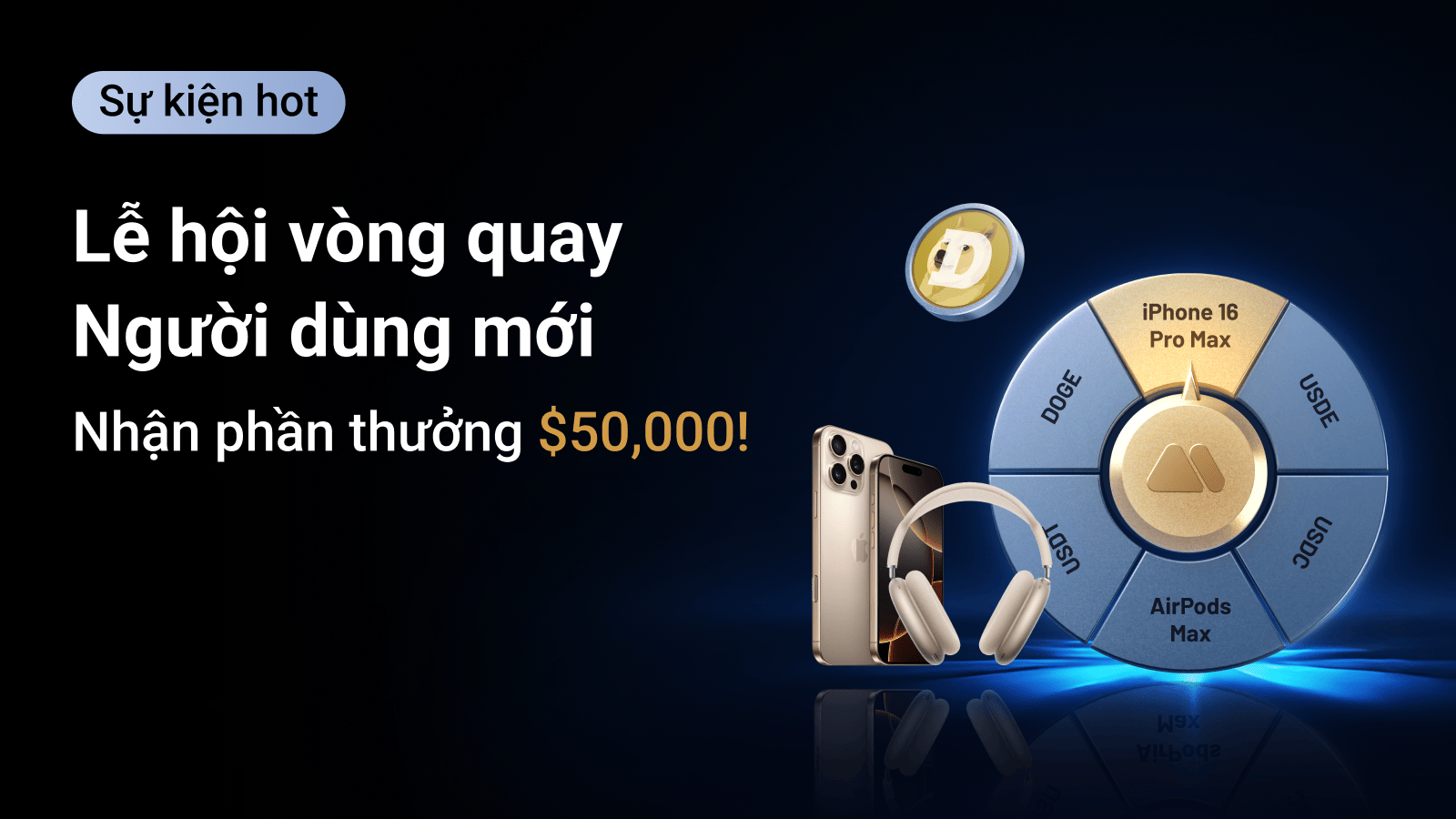 - Phần thưởng hiện vật sẽ được quy đổi thành USDT và phân bổ tương ứng (iPhone 16 Pro Max: 1,200 USDT; AirPods Max: 550 USDT).