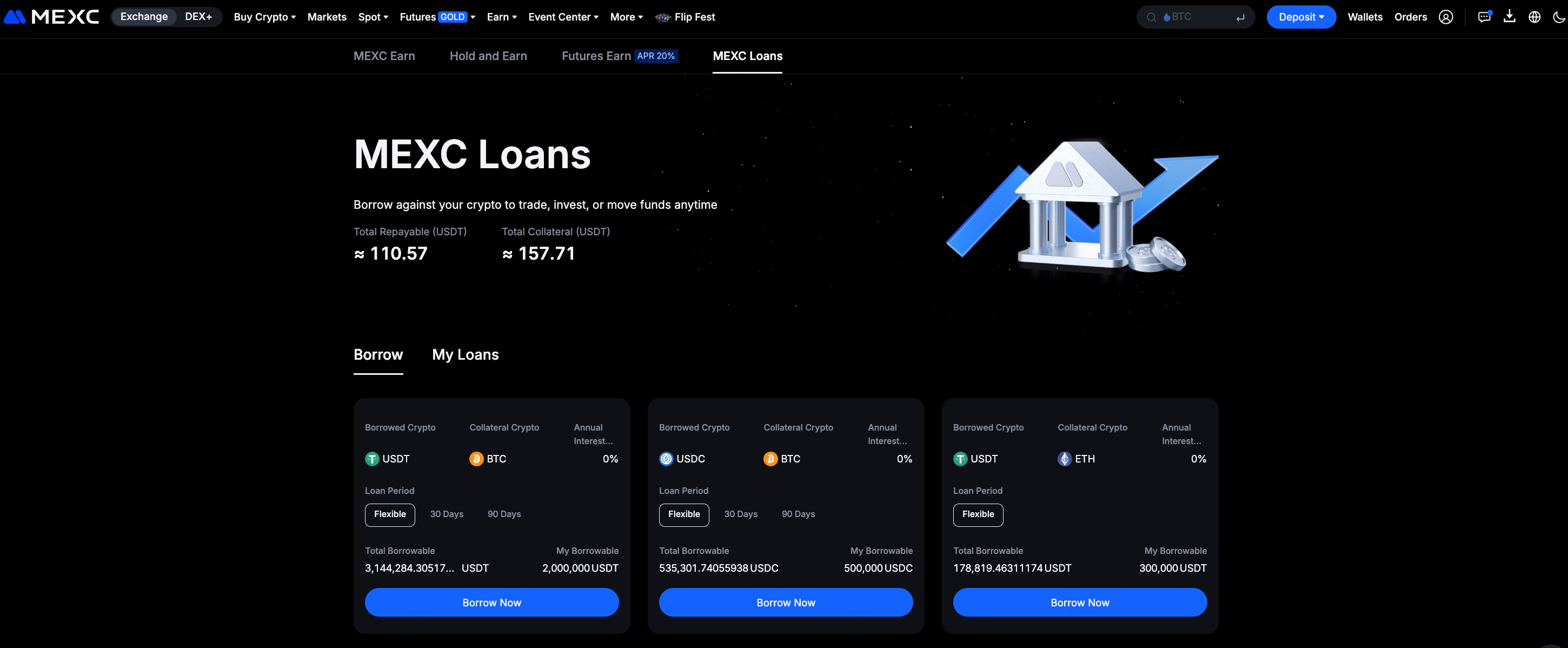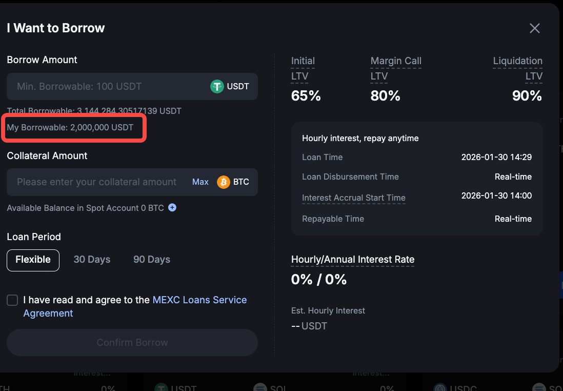 MEXC Loans là giải pháp cho vay tiền mã hóa của MEXC, cho phép người dùng thế chấp một loại tiền mã hóa để vay loại tiền mã hóa khác. Tài sản vay có thể được sử dụng cho giao dịch Spot, phái sinh, đầu