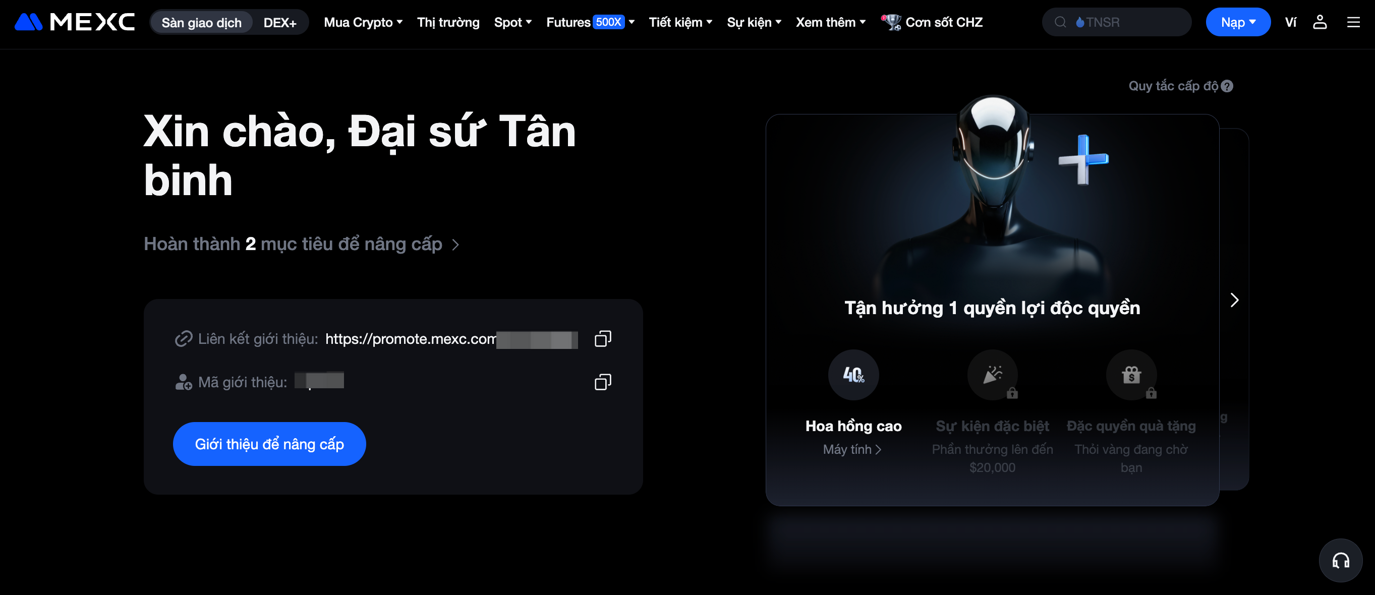 1) Đăng nhập vào tài khoản MEXC và tạo liên kết giới thiệu