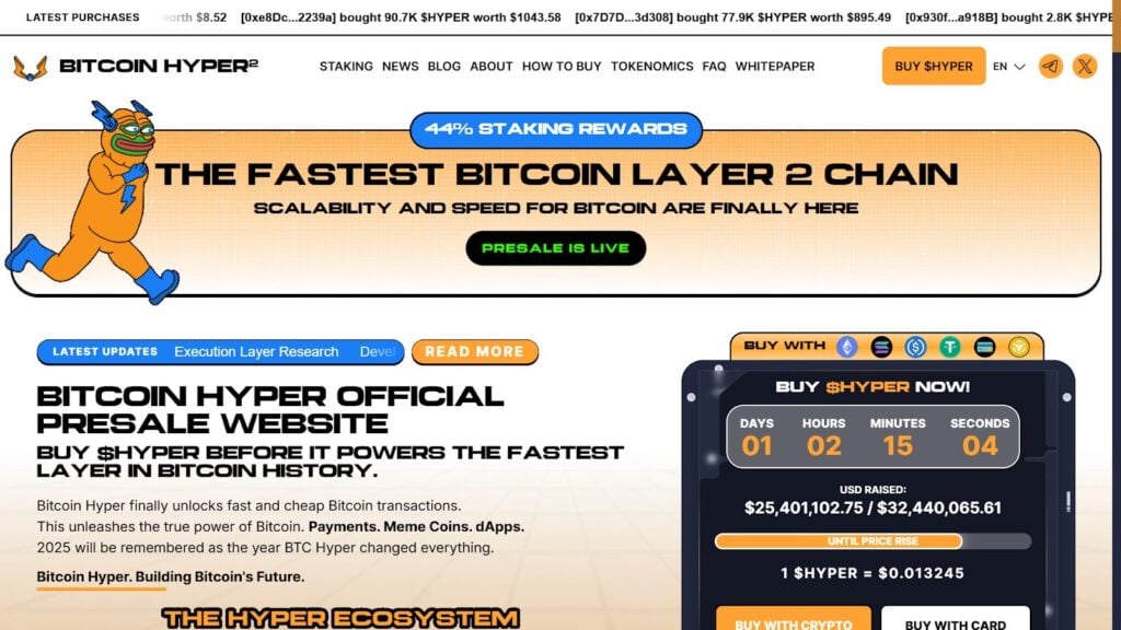 Bitcoin Hyper ($HYPER)是一个新的、受欢迎的预售代币,旨在解决比特币最大的限制之一:交易缓慢且昂贵。虽然比特币极其安全,但其基础链(第1层)无法处理日常使用、DeFi、游戏或高交易量所需的速度。
