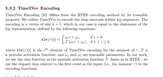 \ 在我们提出的方法中,我们尝试将顺序和时间编码纳入transformer模型,并探索顺序和时间信息对异常检测的重要性。具体而言,我们提出的方法有不同变体,利用以下顺序或时间编码技术。编码随后添加到日志表示中,作为transformer结构的输入。