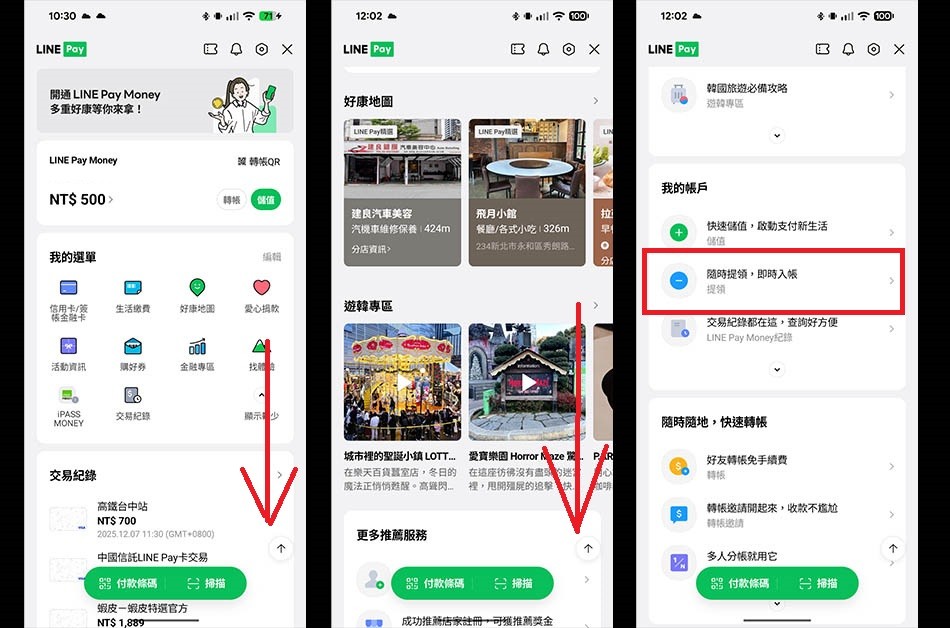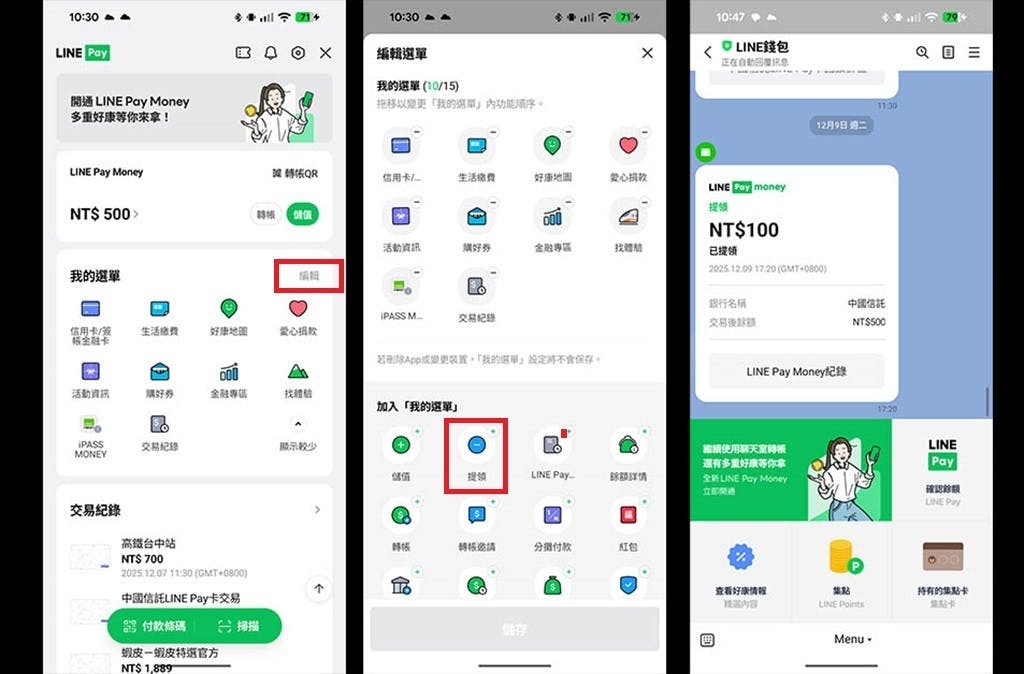 Line Pay Money提領功能在這裡 提領步驟、手續費