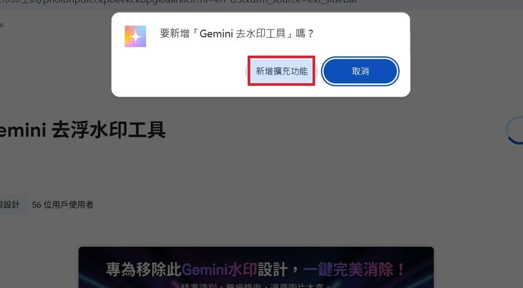 ▲Gemini去浮水印工具由prompt_case製作,只要前往Chrome線上應用程式商店就能夠下載。