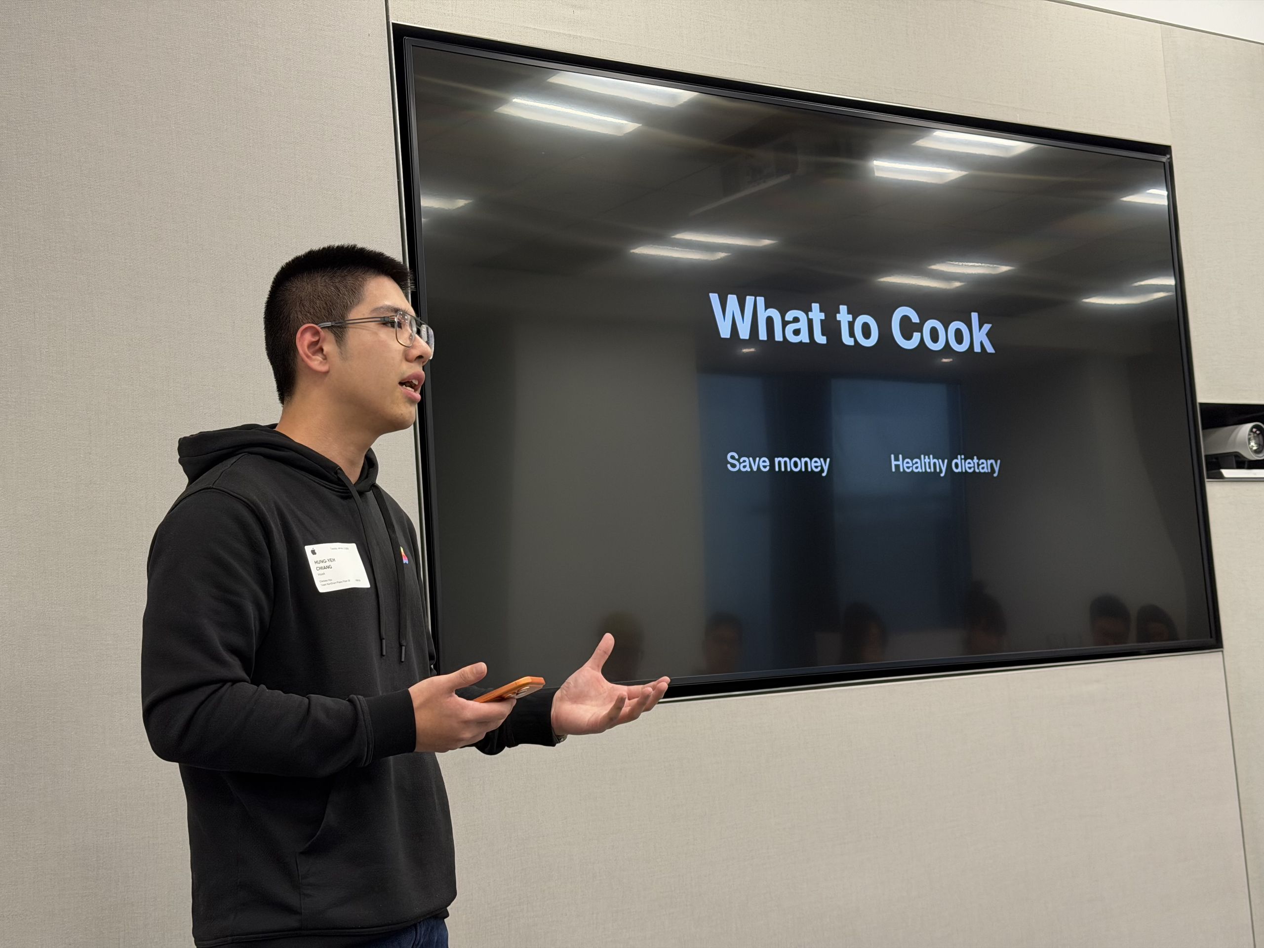 江竑燁也觀察到人們在煮飯時「手部油膩」的痛點,因此 VCook 也特別整合了手勢控制與 Siri 指令,讓使用者無需觸碰螢幕即可切換步驟。這種結合 AI 運算與直覺式互動的設計,正是新世代開發者解決生活細節問題的展現。