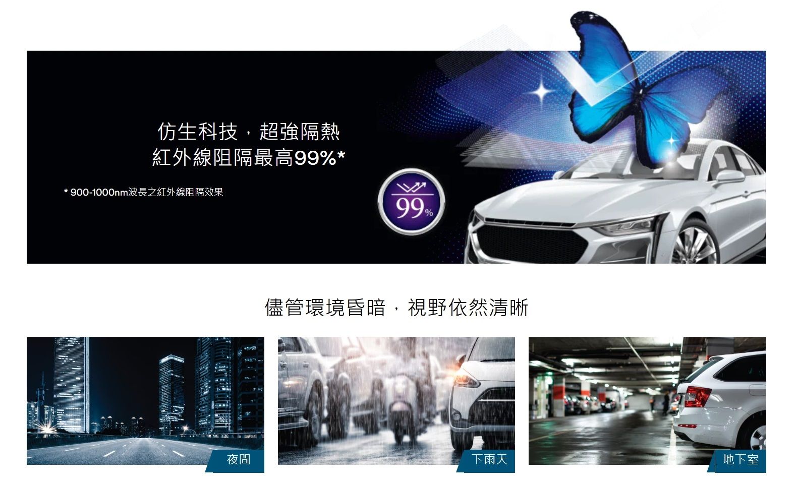 ▲隔熱紙的透光率與可見光有關,透光率越高、隔熱紙越透明,反之透光率越低、隔熱紙越暗。如果選擇透光率過低的隔熱紙,在雨天、夜晚、進入隧道行駛時可能會看不清楚景物。